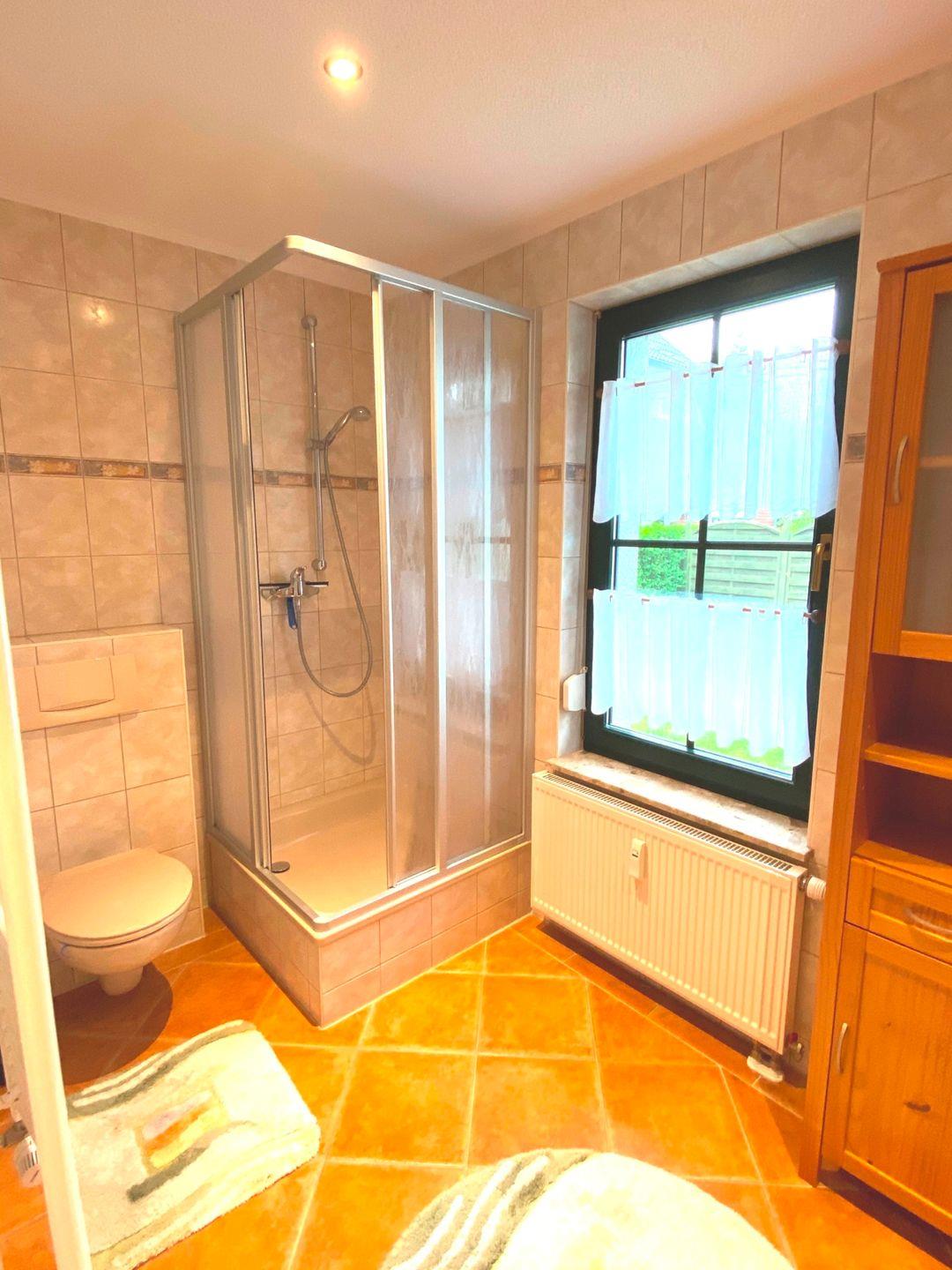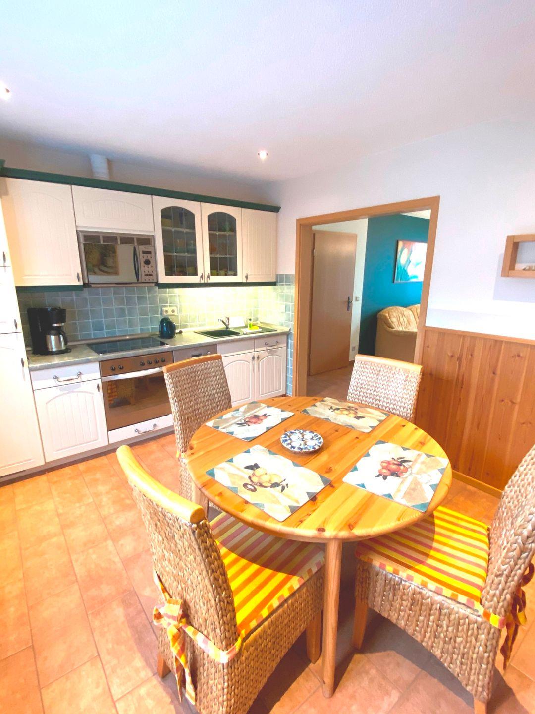 Auf 55 qm bietet diese geräumige Erdgeschosswohnung Platz für bis zu 2 Personen. Über einen Flur mit der Garderobe gelangt man in das Wohnzimmer mit direktem Zugang zur möblierten Südterrasse. Die umfangreich ausgestattete Küche mit der Essecke schließt sich direkt an den Wohnbereich an. Das Schlafzimmer verfügt über ein Doppelbett und einen Kleiderschrank. Im Badezimmer ist ein großer Waschtisch und die Dusche zu finden. Zur Ausstattung gehören zudem ein Gartenhaus für Fahrräder und Außenrollos.