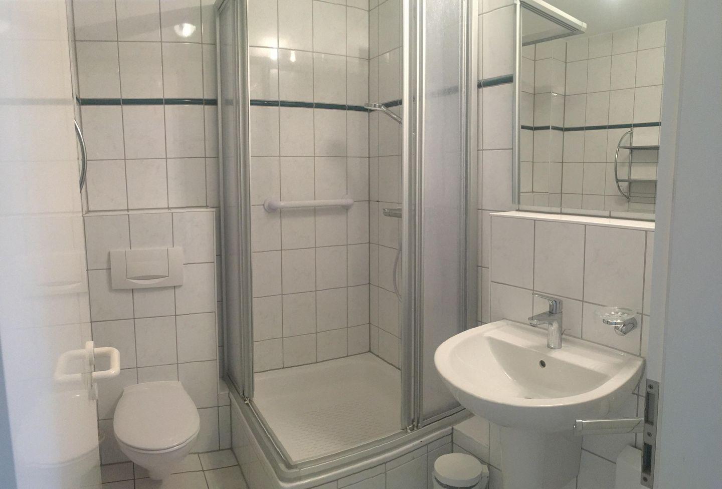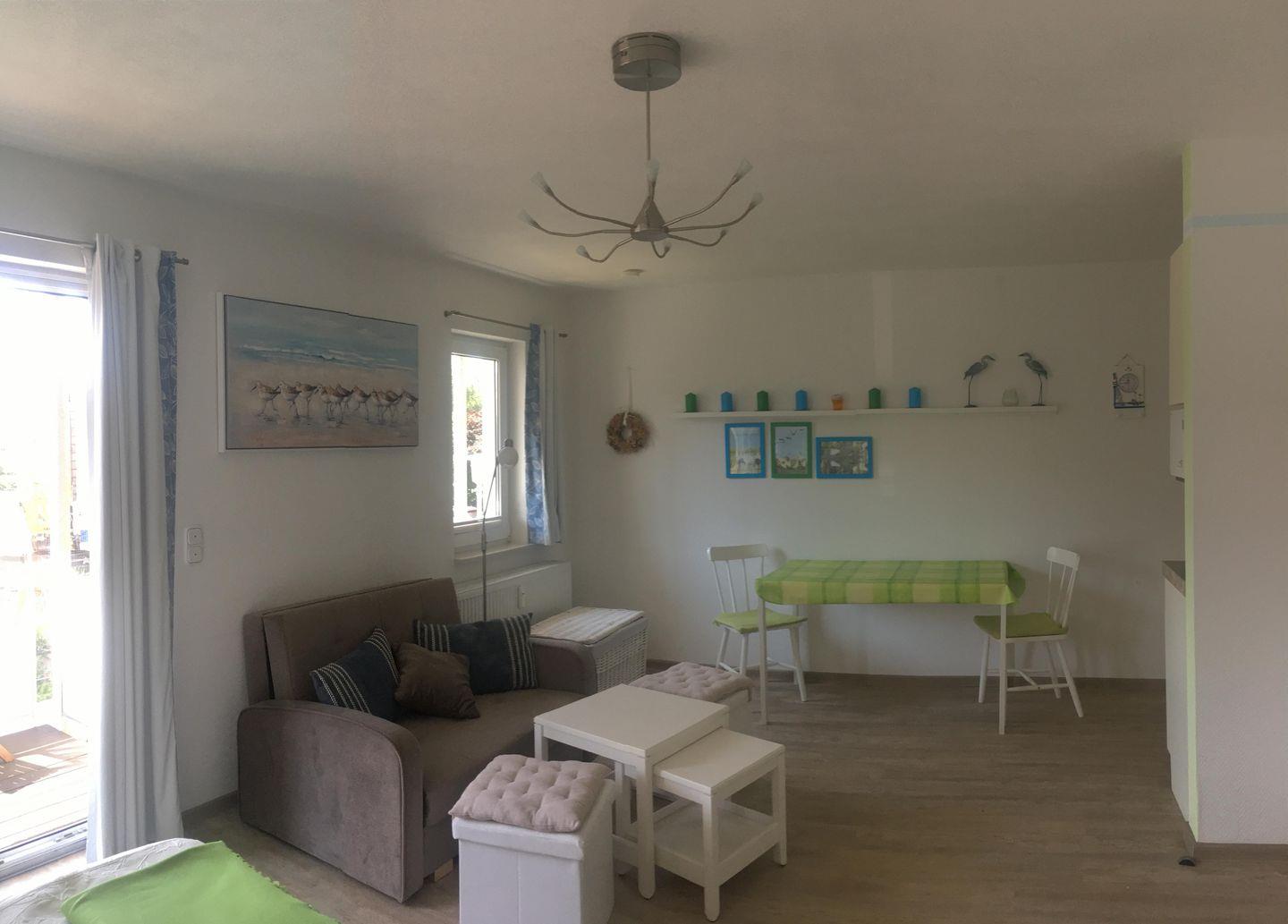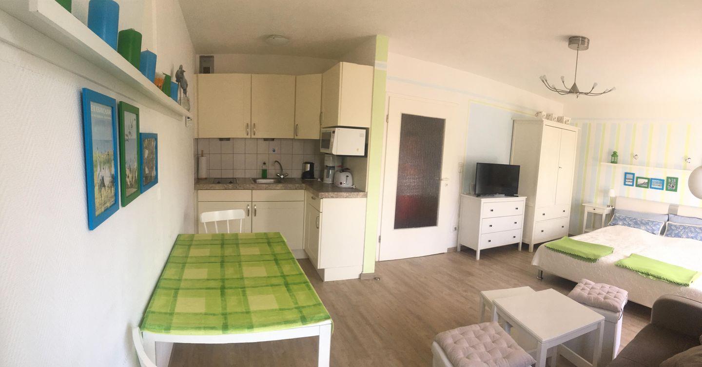 Schönes Studio, 1. OG, 2 Personen mit Süd-Balkon, PKW-Stellplatz, Küchen-Pantry, Bad mit Dusche, WLAN, Zentrum, ruhig gelegen, Strandnähe, Hund erlaubt.