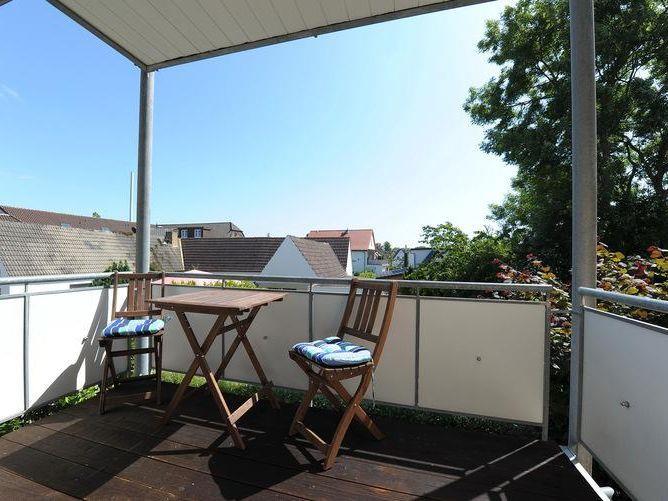 Auf dem vom Wohnzimmer abgehenden Südbalkon mit Blick auf die begrünte Parkfläche befinden sich Balkonmöbel (Tisch und 2 Stühle). Das Mitbringen eines Hundes ist auf Anfrage möglich.