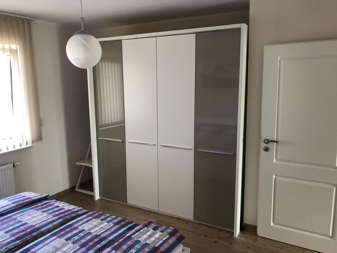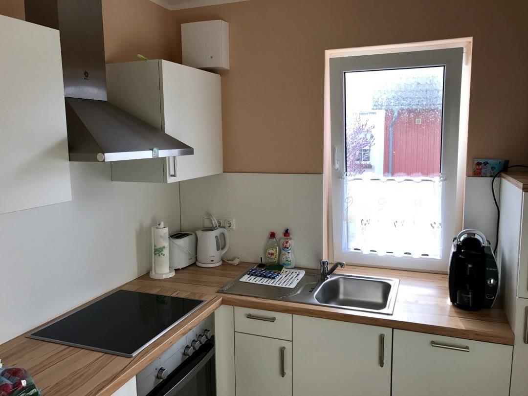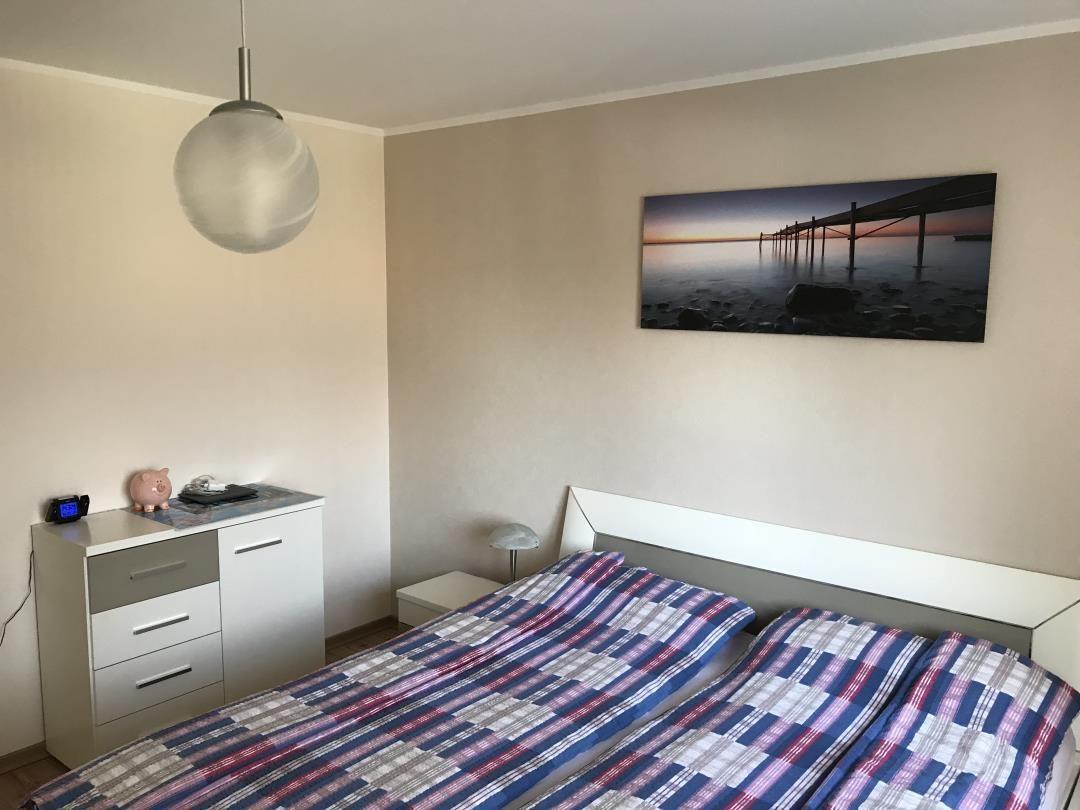 Die vom Flur abgehende Einbauküche ist mit Geschirrspüler, Kühlschrank inkl. Gefrierfach, Backofen, Mikrowelle, Kaffeemaschine, Wasserkocher und Toaster ausgestattet und bietet alles für die Selbstverpflegung. Das vom Flur abgehende moderne Schlafzimmer besteht aus einem komfortablen Doppelbett (2 Matratzen von je 1,00 x 0,90), zwei Nachtschränken, einem großen Kleiderschrank und einer Kommode mit Schubladen. Einen zusätzlichen Schlafplatz ermöglicht das Sofa im Wohnzimmer inkl. Bettfunktion. Das vom Flur abgehende Bad verfügt über Dusche, Waschbecken, WC und Handtuchtrockner. Im Flur finden Sie eine Garderobe mit Spiegel und einen Schuhschrank vor. Die komplette Ferienwohnung ist mit Fliesen bzw. Laminatfußboden ausgestattet. Kostenloses WLAN ist vorhanden. Auf Wunsch stehen Kinderreisebett und Kinderhochstuhl für Ihr Kleinkind kostenlos bereit.