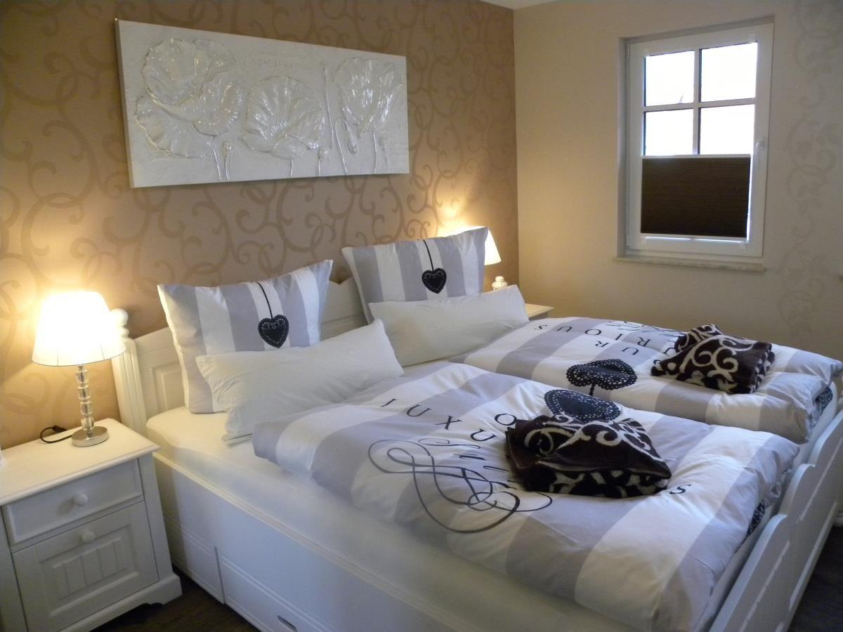 Die Ferienwohnung bietet ein komfortables Schlafzimmer mit einem Doppelbett (2,00 x 1,80 m - zwei Matratzen), großem Einbauschrank und TV. Das vom Flur abgehende Bad verfügt über Dusche, Waschbecken, WC, Fön und Handtuchtrockner. Die komplette Ferienwohnung ist mit Fußbodenheizung ausgestattet.