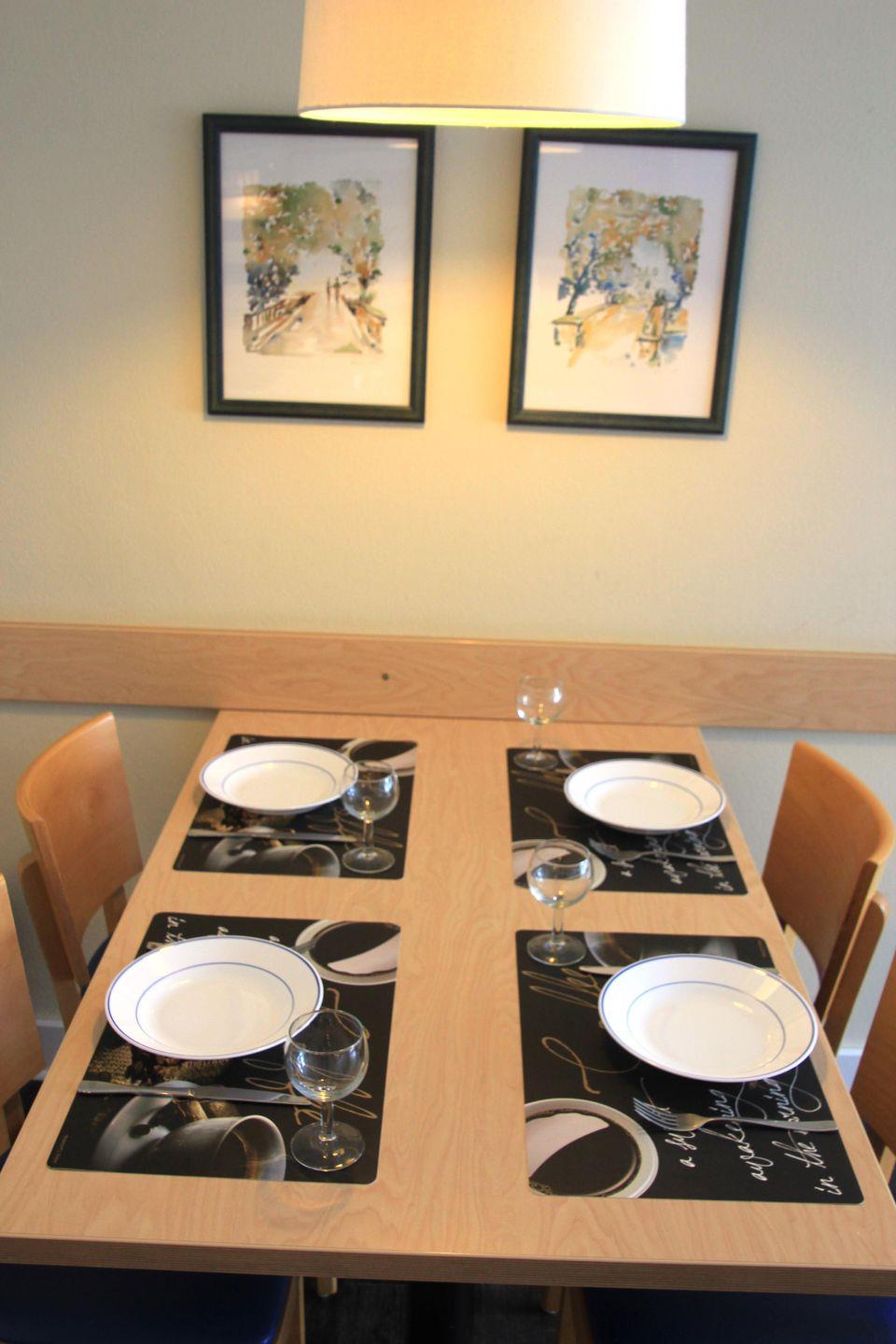 Die Küche mit separatem Esstisch hat Platz für ein gemütliches Essen zu viert.