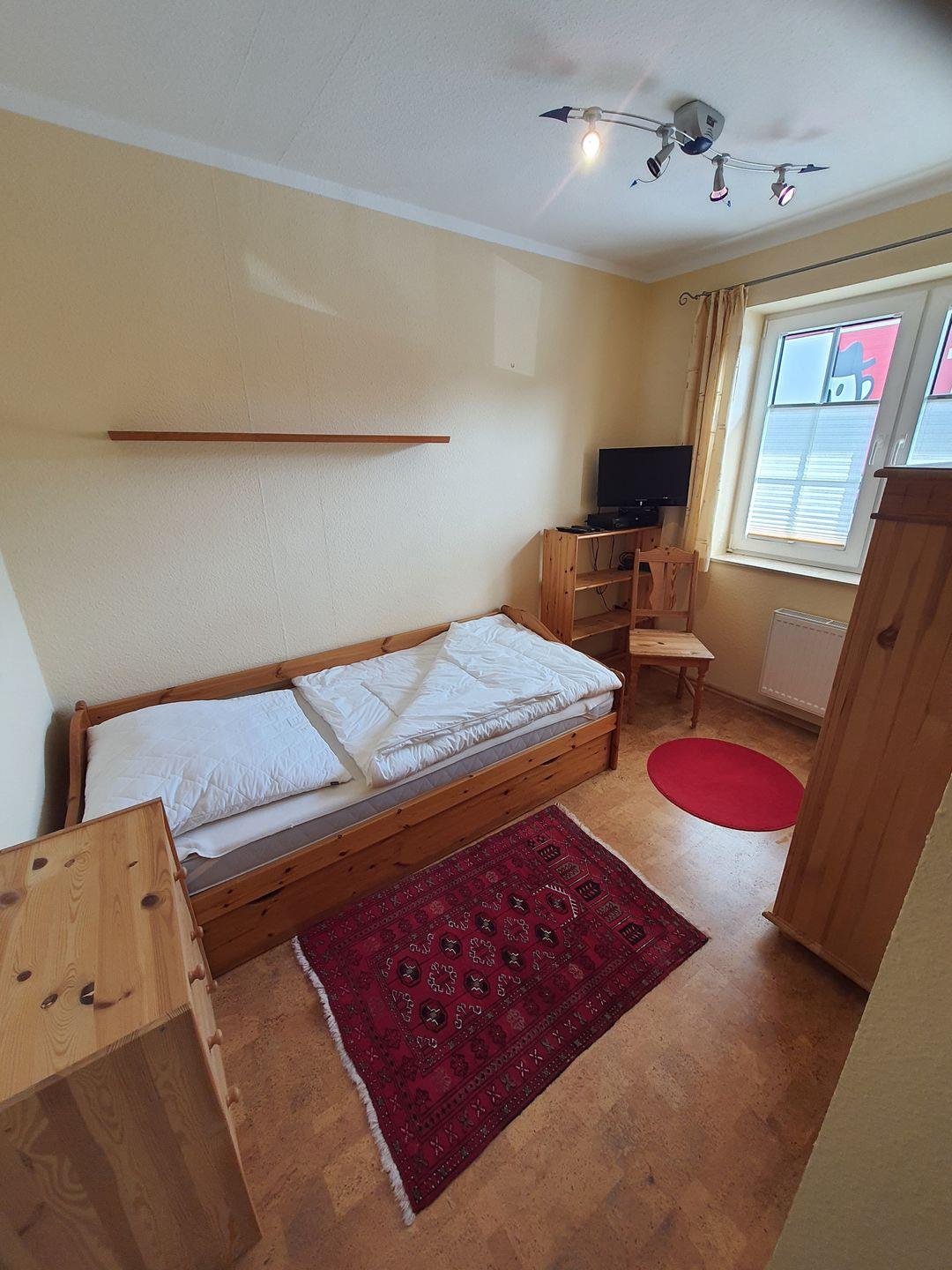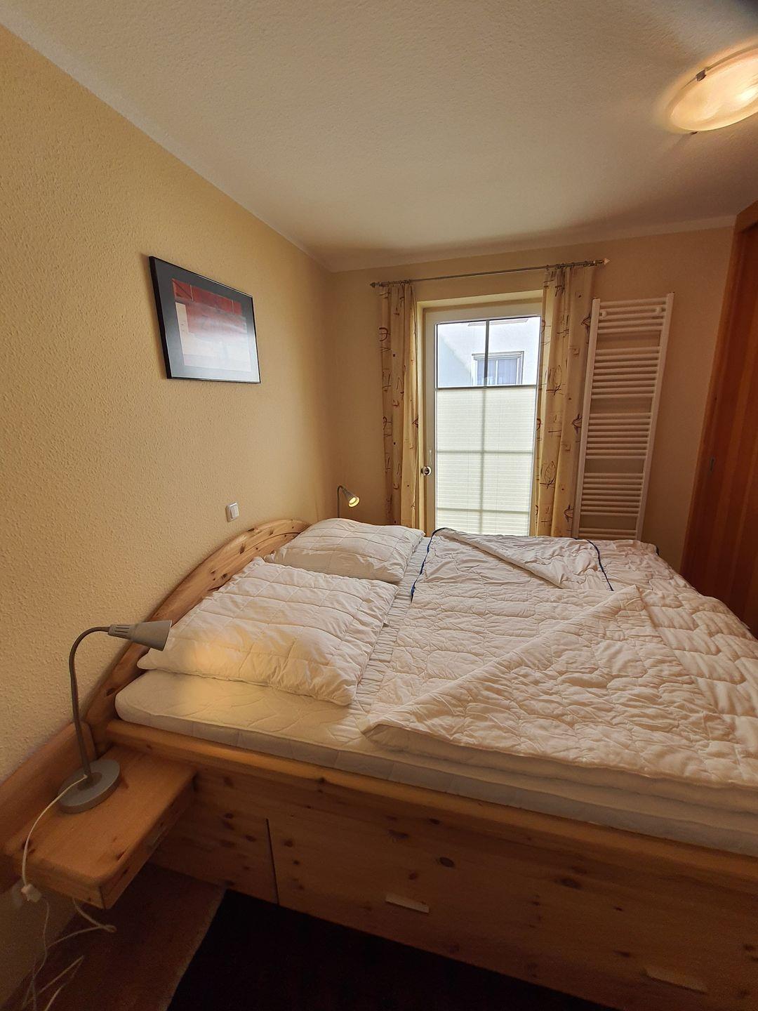 Die Wohnung verfügt über 2 Schlafzimmer. Ein Schlafzimmer mit Ehebett (Außenrollo), ein Schlafzimmer mit Einzelbett (Außenrollo).