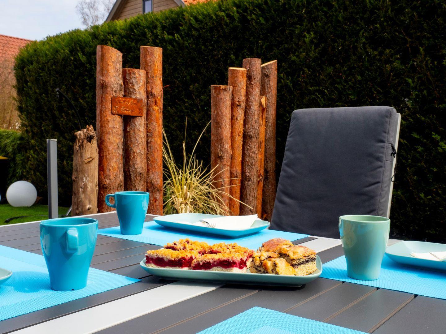 Im Sommer lädt Sie die schöne Terrasse mit bequemen Outdoormöbeln, Sonnenschirm, Holzkohlegrill, 2 Sonnenliegen und einem Hängesessel zum Chillen ein. Für einen perfekten Tag am Strand steht Ihnen ein Bollerwagen inkl. Stranddecke, Sonnenschirm, Windschutz und einer hochwertigen Kühlbox inkl. Kühlakkus und viel Strandspielzeug für unsere kleinen Gäste zur Verfügung.