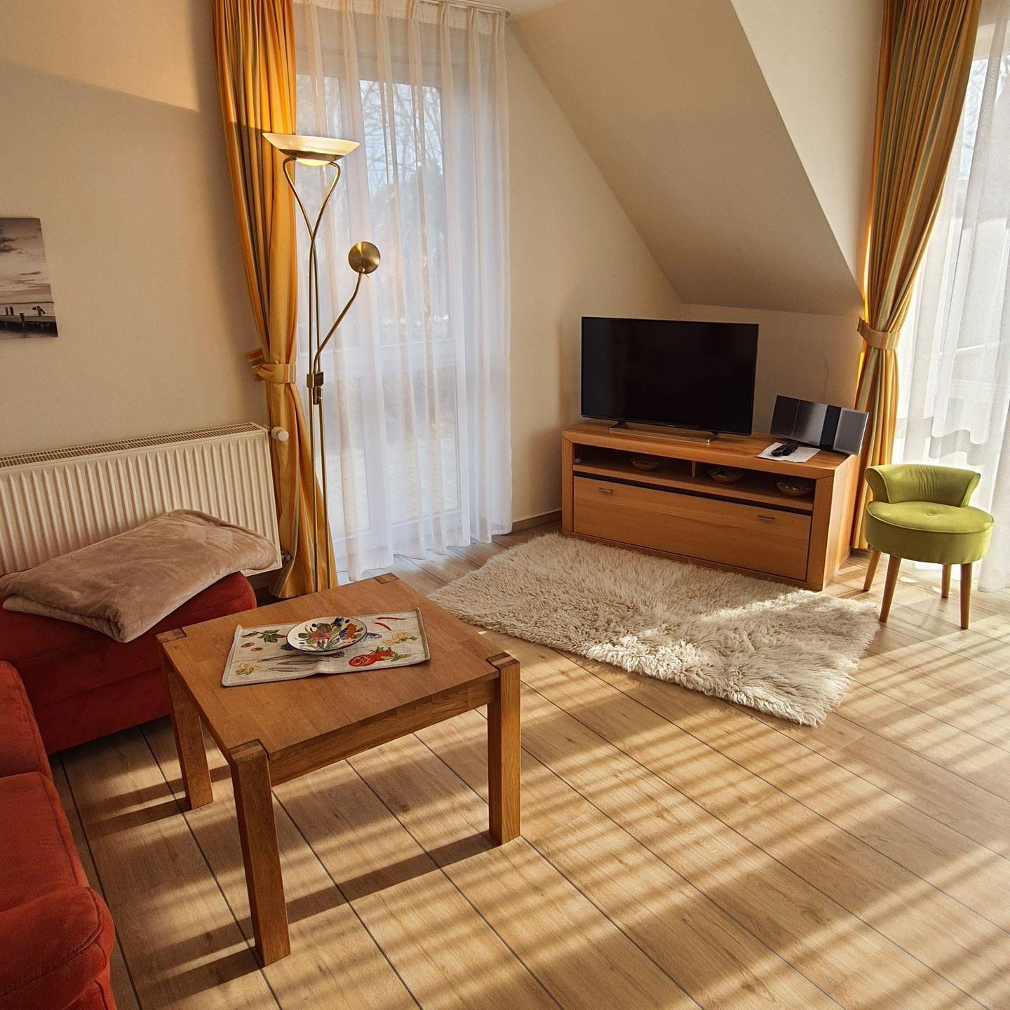 Im Wohnzimmer steht Ihnen ein Fernseher, ein CD-Spieler, Radio, für abwechslungsreiche Unterhaltung zur Verfügung.