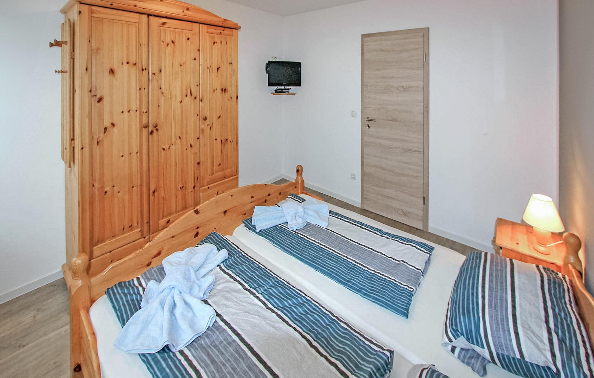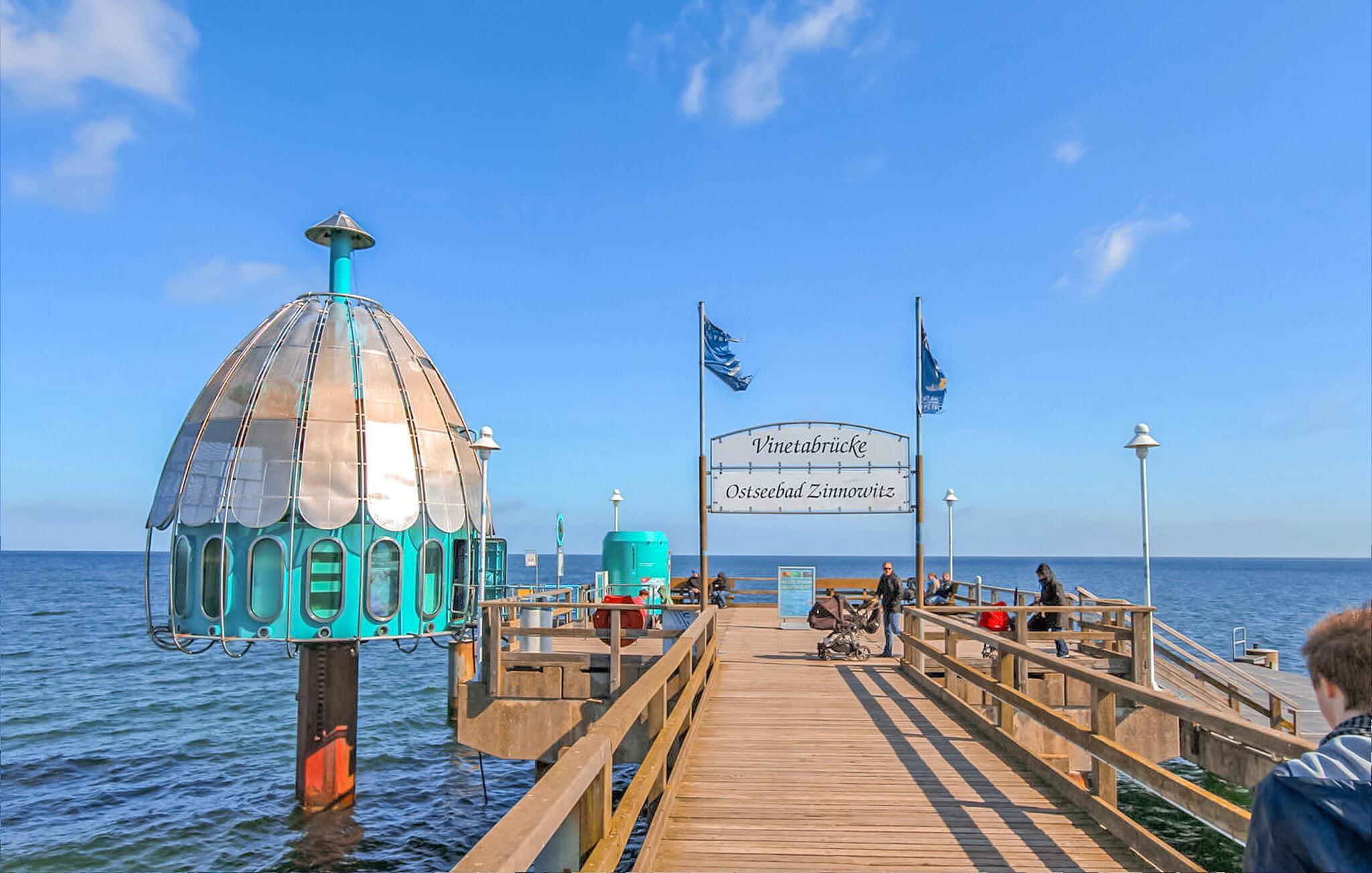De tre feriehuse for 2 til 4 personer ligger hver for sig på en 1000 kvadratmeter stor fritidsejendom i et roligt boligområde, kun 750 m fra Østersøstranden. Der er endnu et sommerhus på ejendommen. Husene blev fuldstændig ombygget og genudstyret i 2018. Dette feriehus til 2 voksne og 2 børn er udstyret med en stue (polstrede møbler, fladskærms-tv, radio, spisebord), et soveværelse (dobbeltseng, tv), et børneværelse (køjeseng, tv), en tekøkken (el kogeplade, køleskab med fryser, diverse køkkenmaskiner) og et lille badeværelse med brus/toilet. Hver bolig har en udendørs møbleret terrasse, grill og parkeringsplads. Cykler du medbringer kan opbevares sikkert. En barneseng og en høj stol kan stilles til rådighed for små børn efter anmodning. Den samlede pris inkluderer slutrengøring samt vand- og energiforbrug. Du kan medbringe dit eget sengelinned og håndklæder eller leje dem. Østersøferiestedet Zinnowitz er underlagt turistskat. Østersøferiestedet Zinnowitz med sin brede sandstrand og dens promenade fyldt med smukke villaer er en af de smukkeste badebyer på øen Usedom. Talrige restauranter, indkøbsmuligheder, en surf- og sejlerskole, et veludbygget netværk af cykelstier samt tennisbaner og et termisk spa giver mulighed for en varieret ferie. Spa-/kulturprogrammer finder sted regelmæssigt om sommeren. Højdepunktet er Vineta Festivalen, som opføres på friluftsscenen hele sommeren. Stedet har også en 300 m lang mole med dykkergondol. Herfra kan du tage bådture til andre badebyer så langt som til Polen.