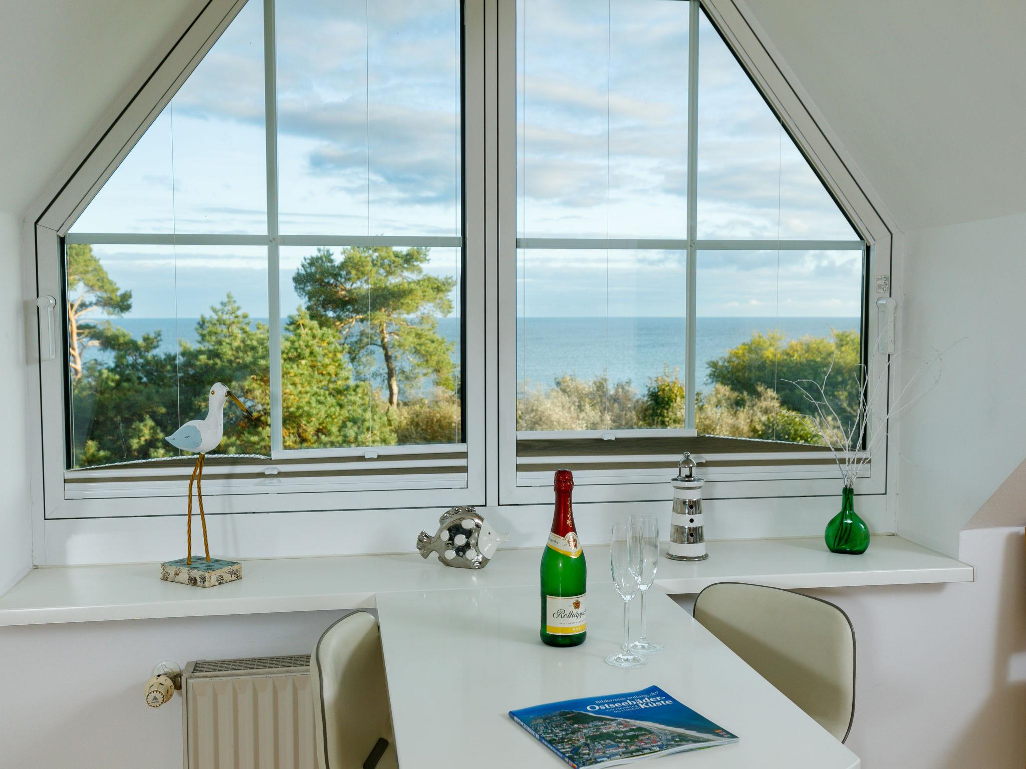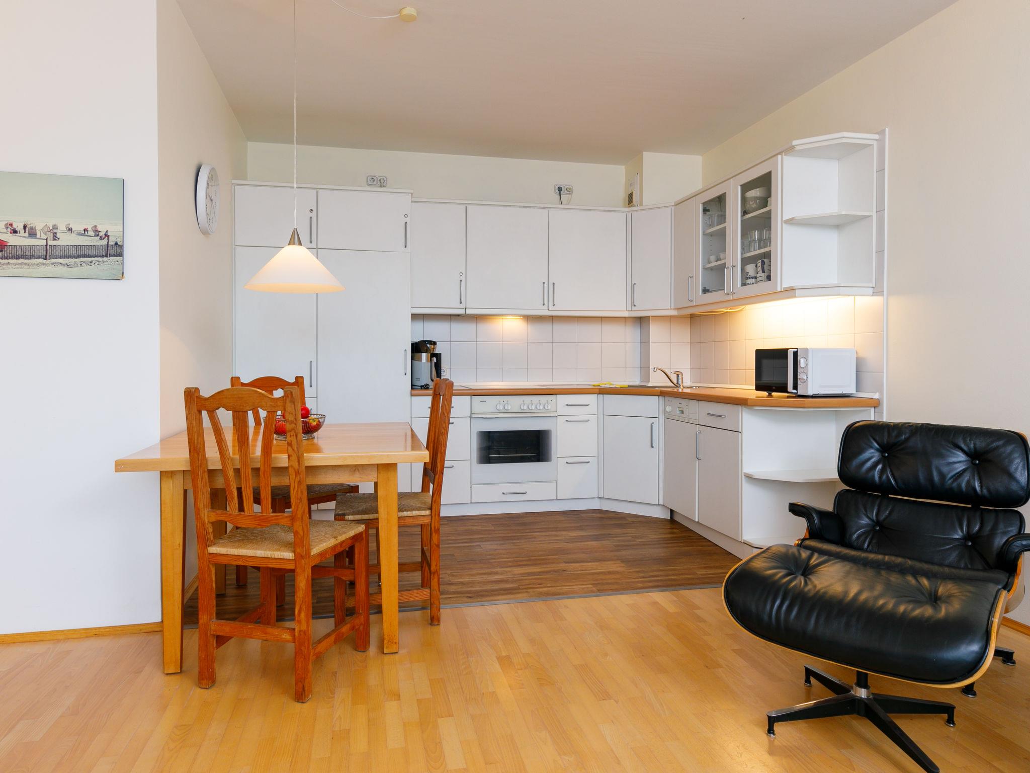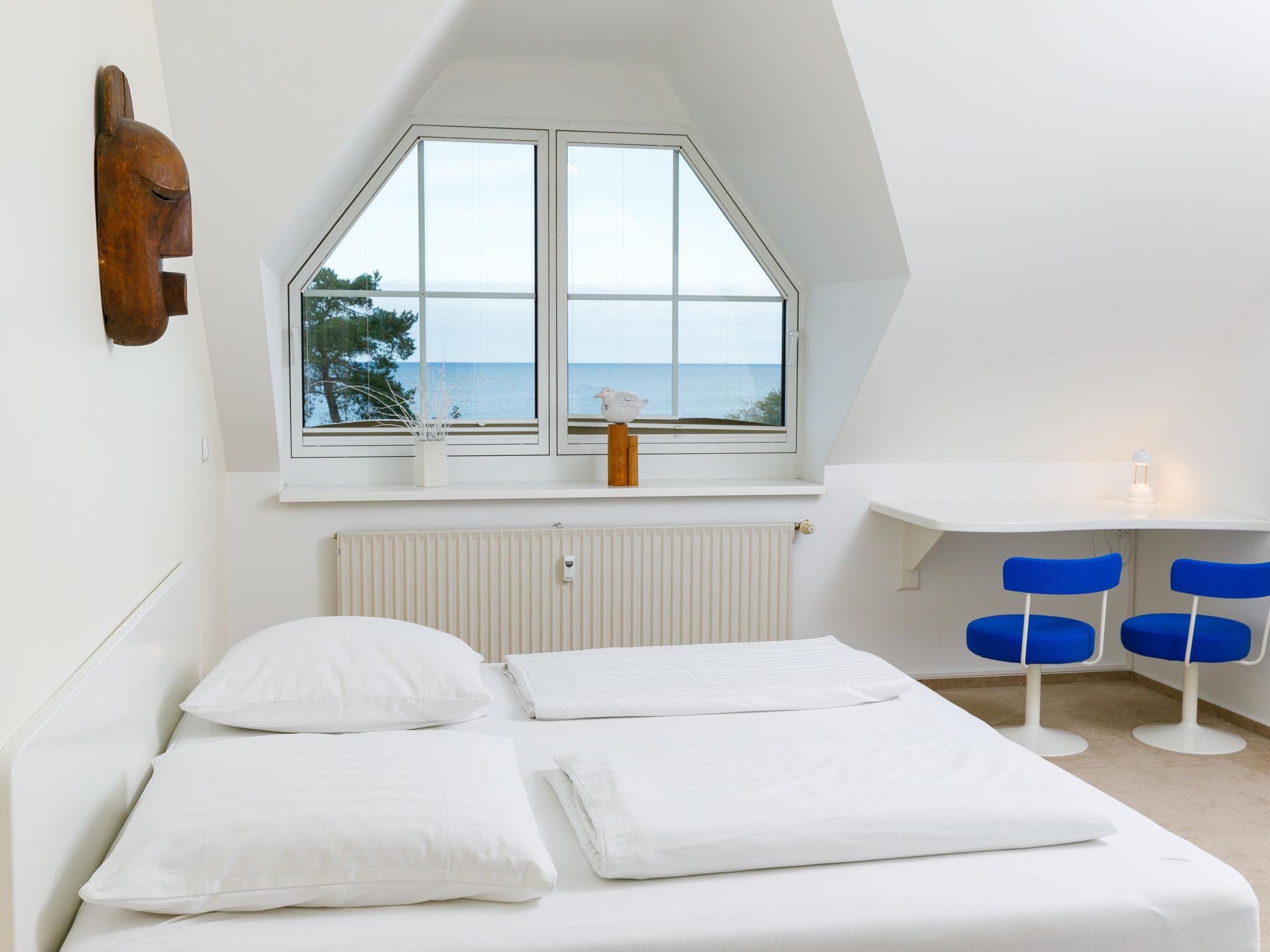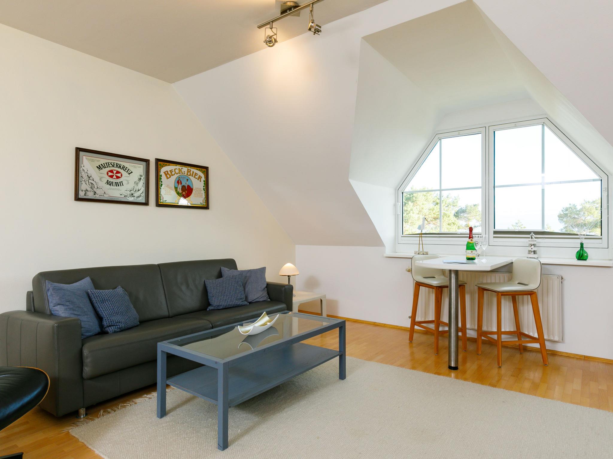 "Morgensonne", 2-room apartment 51 m2, on the top floor. With sloping ceilings, cosy furnishings: living/dining room with 1 double sofabed (160 cm, length 200 cm), cable TV (flat screen). 1 room with 1 double bed (2 x 100 cm, length 200 cm). Kitchenette (oven, dishwasher, 4 ceramic glass hob hotplates, toaster, kettle, microwave). Bathroom, sep. WC. Beautiful view of the sea. Facilities: children's high chair, baby cot. Parking (fenced 1 car). Please note: non-smokers only. Smoke alarm.