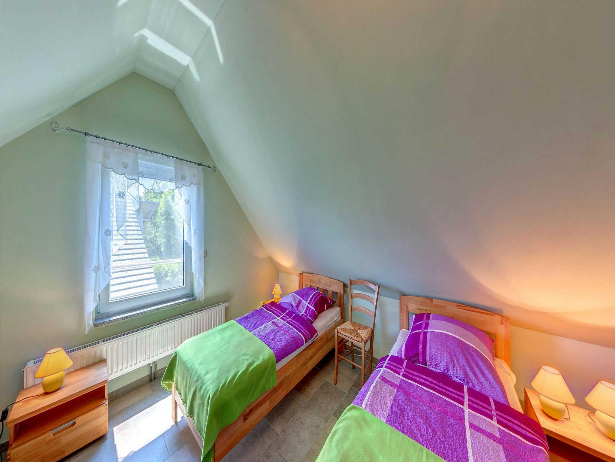 Die Wohnung besitzt 3 Schlafzimmer im OG mit je einem Doppelbett und einem Schlafraum im DG mit 4 Einzelbetten.