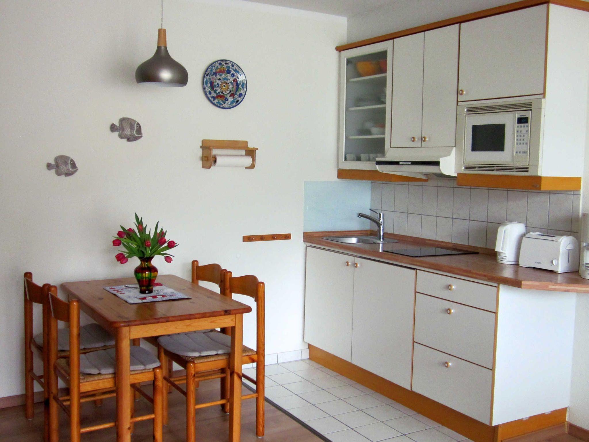 1 Wohnzimmer mit 2 Schrankbetten mit Ess- und Küchenbereich, Farbfernseher, DAB+ Radio mit Bluetooth und USB, WLAN für max. 2 Geräte.