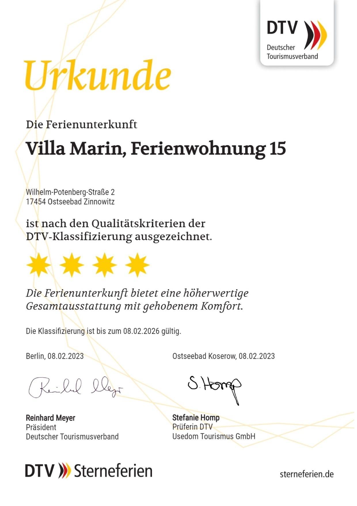 Die 48 m ² große und mit 4 DTV Sternen klassifizierte Ferienwohnung 15 befindet sich in der 1. Etage in der Villa Marin. Sie bietet mit ihren zwei Zimmern ausreichend Platz für bis zu 4 Personen.