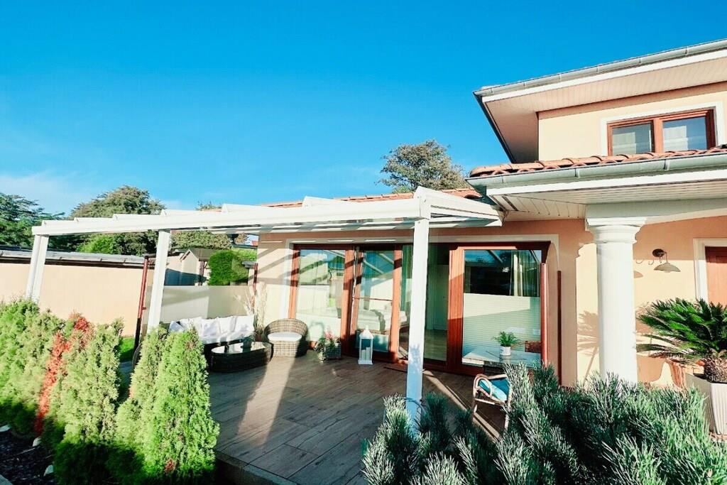 Herzlich Willkommen in Ihrer Ferienwohnung Alexa. Unsere komfortable Ferienwohnung bietet Ihnen ausreichend Platz für 2 Personen oder je nach Bedarf kann auch eine Aufbettung gestellt werden. Im kombinierten Wohn- Schlafbereich befindet sich ein geräumiges Doppelbett mit einer durchgehenden Liegefläche, welche die Bequemlichkeit noch durch einen Gel - Topper verstärkt. Für den erholsamen Schlaf erwarten Sie Verdunkelungsgardinen, die vor zu viel Sonne schützen und kühlend wirken. Zudem sind die Fenster noch zusätzlich mit Plissees und Fliegenschutzgitter ausgestattet. Im kombinierten Wohnbereich erwarten Sie 2 bequeme Sessel, ein großer Flachbildfernseher mit Sat TV sowie einem Radio. Die integrierte Küche ist hochwertig mit Geschirrspüler, Kühlschrank, Kaffeemaschine, Backofen, Toaster und Wasserkocher eingerichtet. Ebenfalls können Sie dort gemütlich am Esstisch frühstücken. Das geräumige Bad ist mit einer Ganzglasdusche, WC und einem Fenster ausgestattet. Es ist ein Fön vorhanden, ein Kosmetikspiegel und moderne Badschränke. DieTerrassenfensterfront sorgen für einen hell und Licht durchfluteten Raum. Als Besonderheit ist die große Sonnenterrasse mit ca. 20 qm zu anzusehen, dem sich Ihr eigener Garten zur Nutzung anschließt. Ein zur Wohnung zugehöriger PKW- Stellplatz befindet sich unmittelbar vor dem Haus und kann kostenlos genutzt werden.