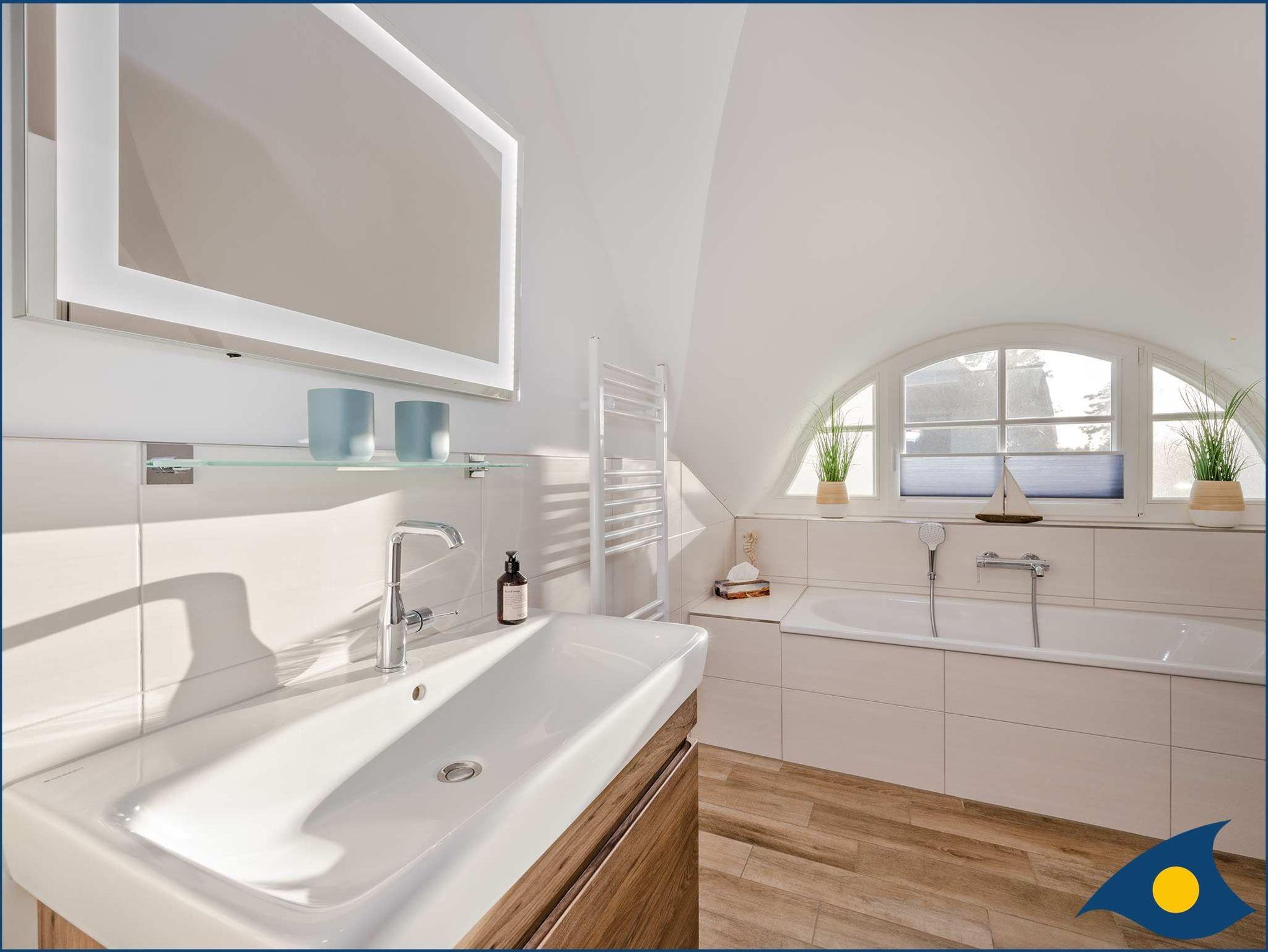 Im Obergeschoss befinden sich zwei Schlafzimmer mit ausreichend Strauraum für Ihre privaten Sachen und ein großzügiges Badezimmer mit Badewanne und Dusche.