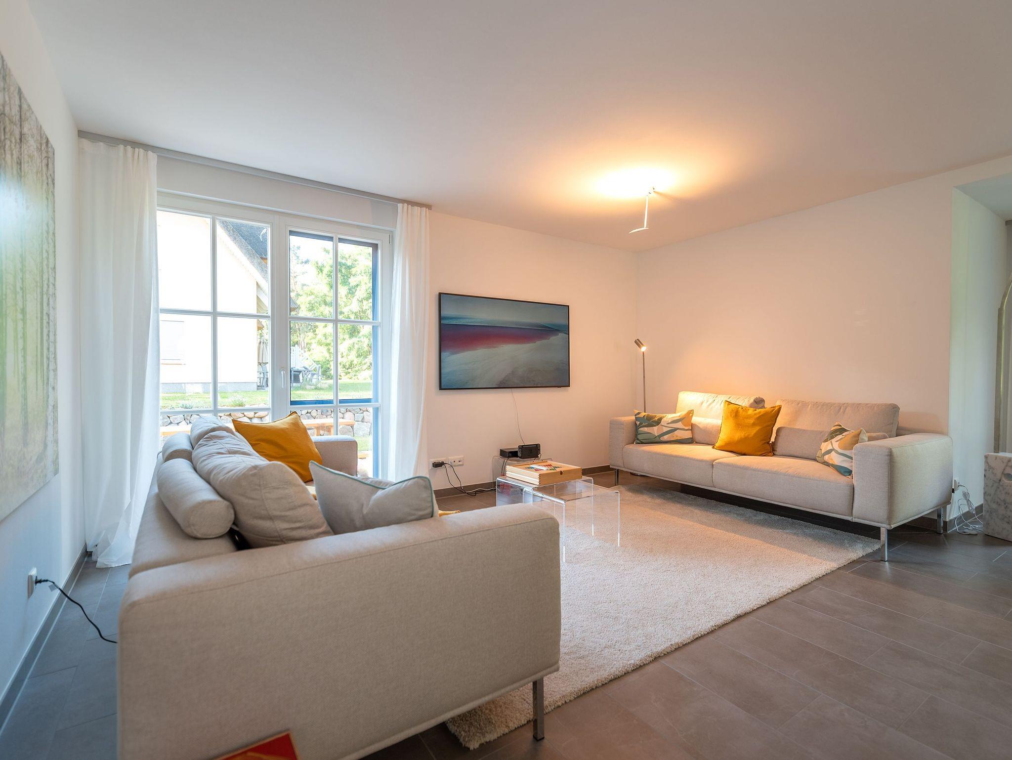 Im Inneren erwartet Sie ein offener, moderner und heller Wohnbereich, ausgestattet mit Kabel-TV, DVD und Nintendo. Bitte beachten Sie, dass unser WLAN erst ab September 2023 verfügbar sein wird.