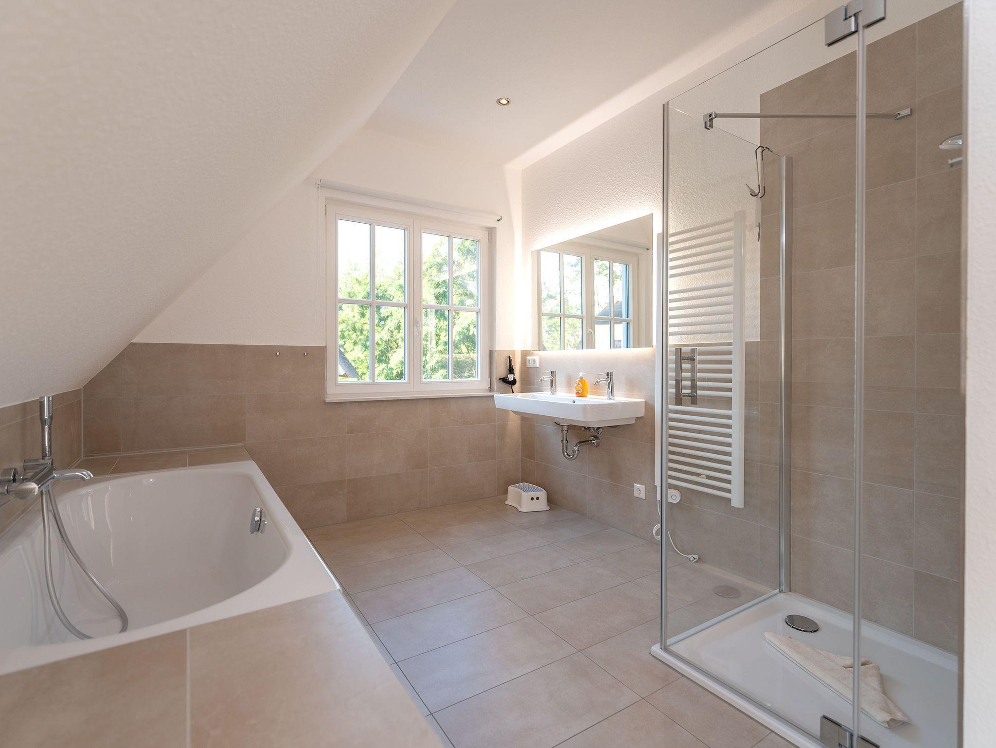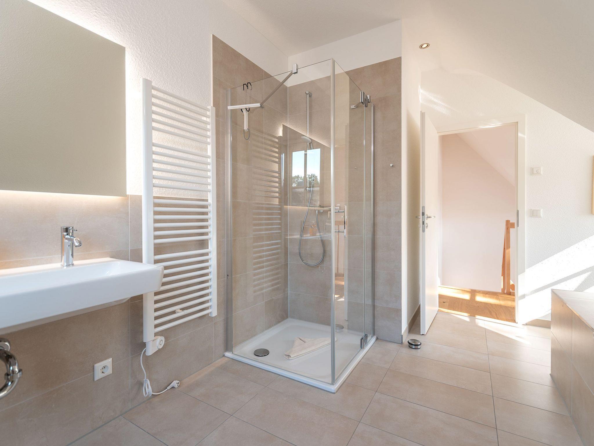 • 2 großzügige Badezimmer (1 Bad mit Sauna und Regendusche im EG, 1 Bad mit Dusche und Badewanne im OG)