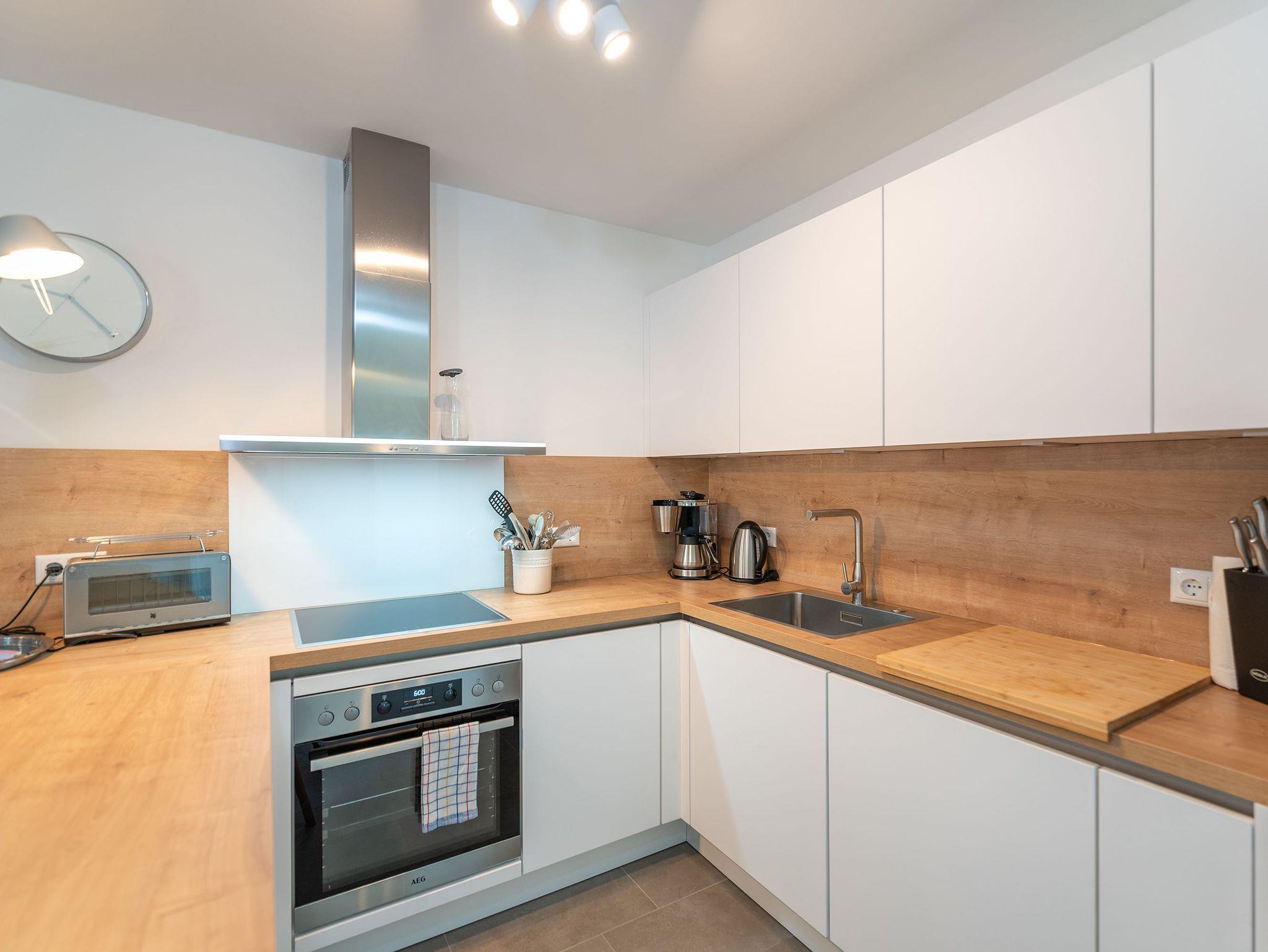 Die hochwertige Küche ist perfekt für Hobbyköche und bietet alles, was Sie für ein kulinarisches Erlebnis benötigen - inklusive Waffeleisen, Kaffeemaschine, Toaster, Induktionskochfeld, Spülmaschine und einem kombinierten Kühl- und Gefrierschrank. Auch an die kleinen Gäste haben wir gedacht: Kinderbesteck ist ebenfalls vorhanden.