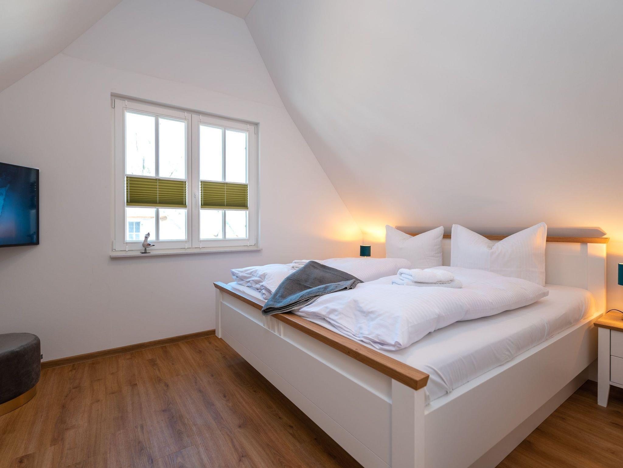 Das charmante, reetgedeckte Ferienhaus „Schmusedom“ versprüht den beliebten Usedomer Inselflair. Auf ca. 97 [nbsp]liebevoll eingerichteten Quadratmetern finden 6 Personen bequem Platz. In der oberen Etage bietet ein Schlafzimmer mit Doppelbett und geräumigem Kleiderschrank Platz zum Träumen und genug Stauraum für die Urlaubsgarderobe. Das zweite Schlafzimmer verfügt zusätzlich zum Doppelbett noch über ein Babybett. Beide Schlafzimmer haben einen Smart-TV.