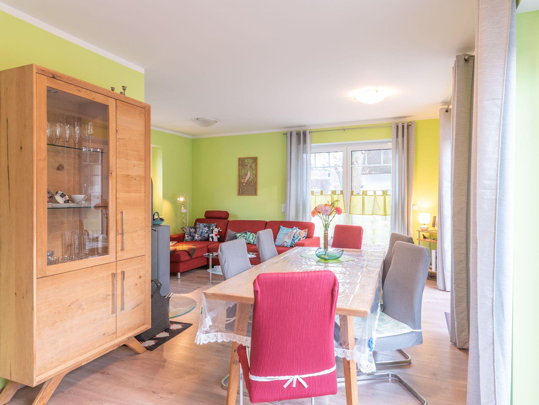 Das Herzstück des Hauses bildet der gemütliche Wohnbereich, der mit einem Fernseher und einem einladenden Kamin ausgestattet ist der perfekte Ort, um nach einem Tag voller Entdeckungen zu entspannen. Der angrenzende Essbereich und die offene, voll ausgestattete Küche laden zum gemeinsamen Kochen und Verweilen ein.