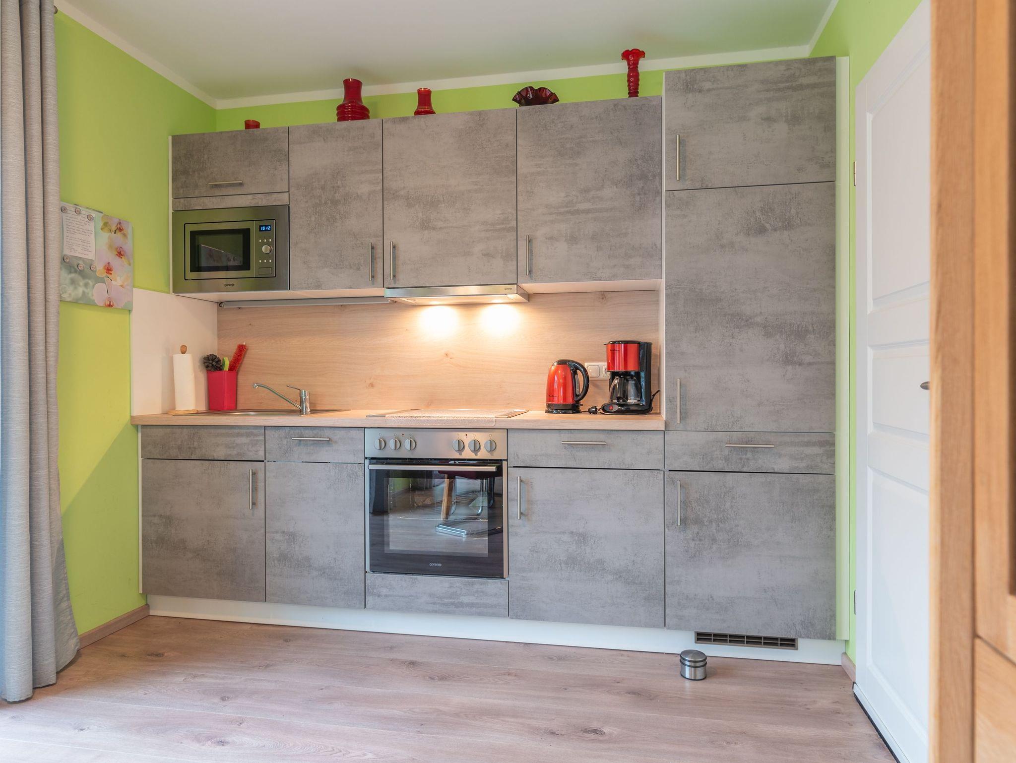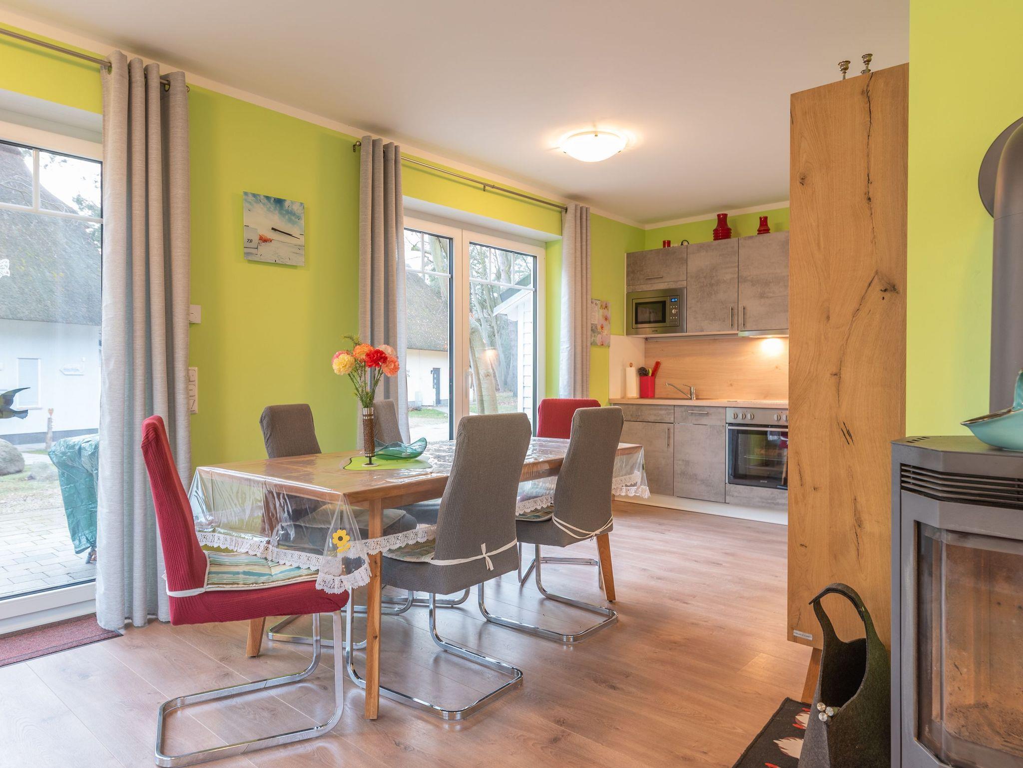 Das Herzstück des Hauses bildet der gemütliche Wohnbereich, der mit einem Fernseher und einem einladenden Kamin ausgestattet ist ? der perfekte Ort, um nach einem Tag voller Entdeckungen zu entspannen. Der angrenzende Essbereich und die offene, voll ausgestattete Küche laden zum gemeinsamen Kochen und Verweilen ein.