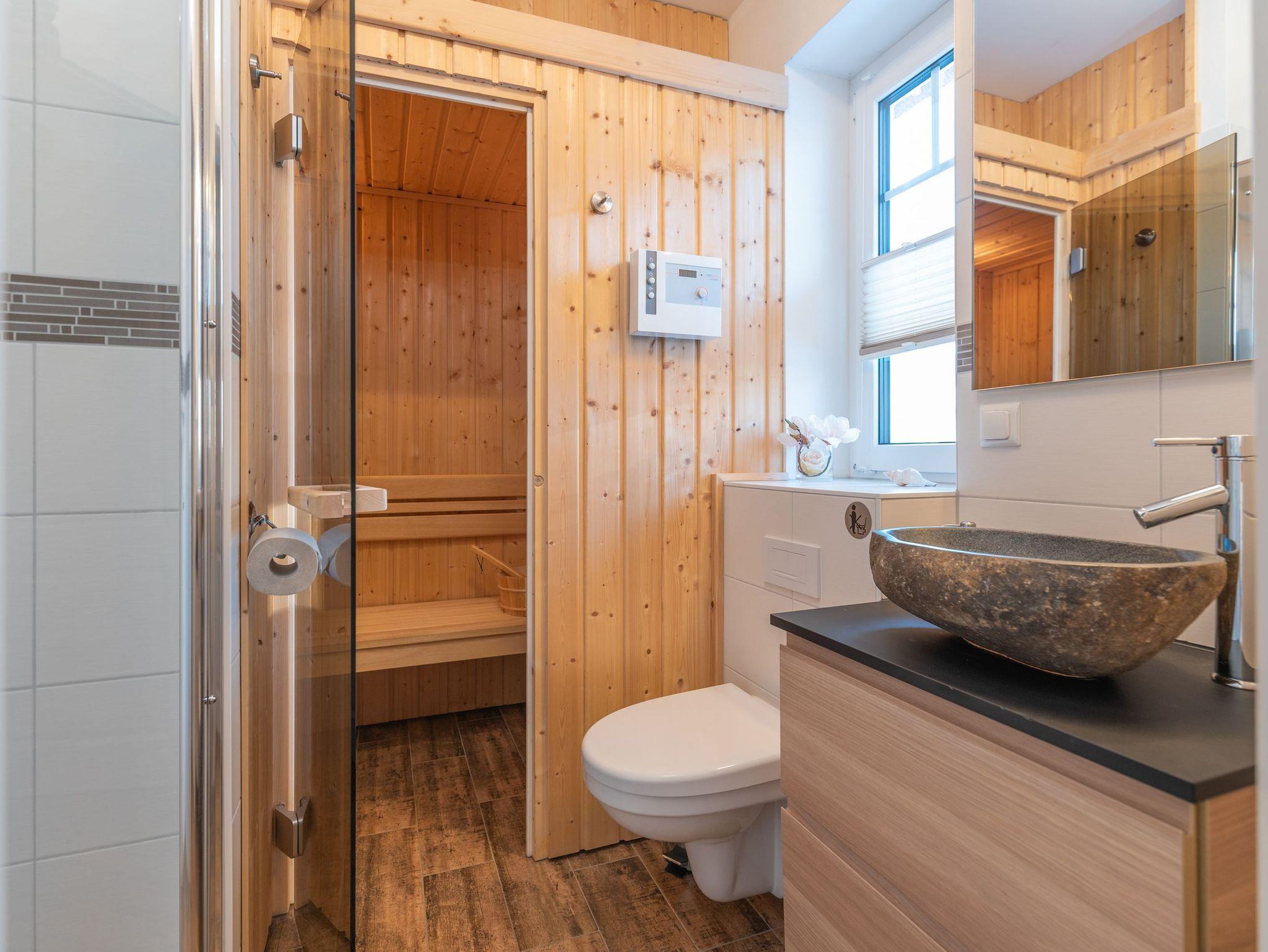 • Badezimmer mit Dusche, WC und Sauna im Erdgeschoss