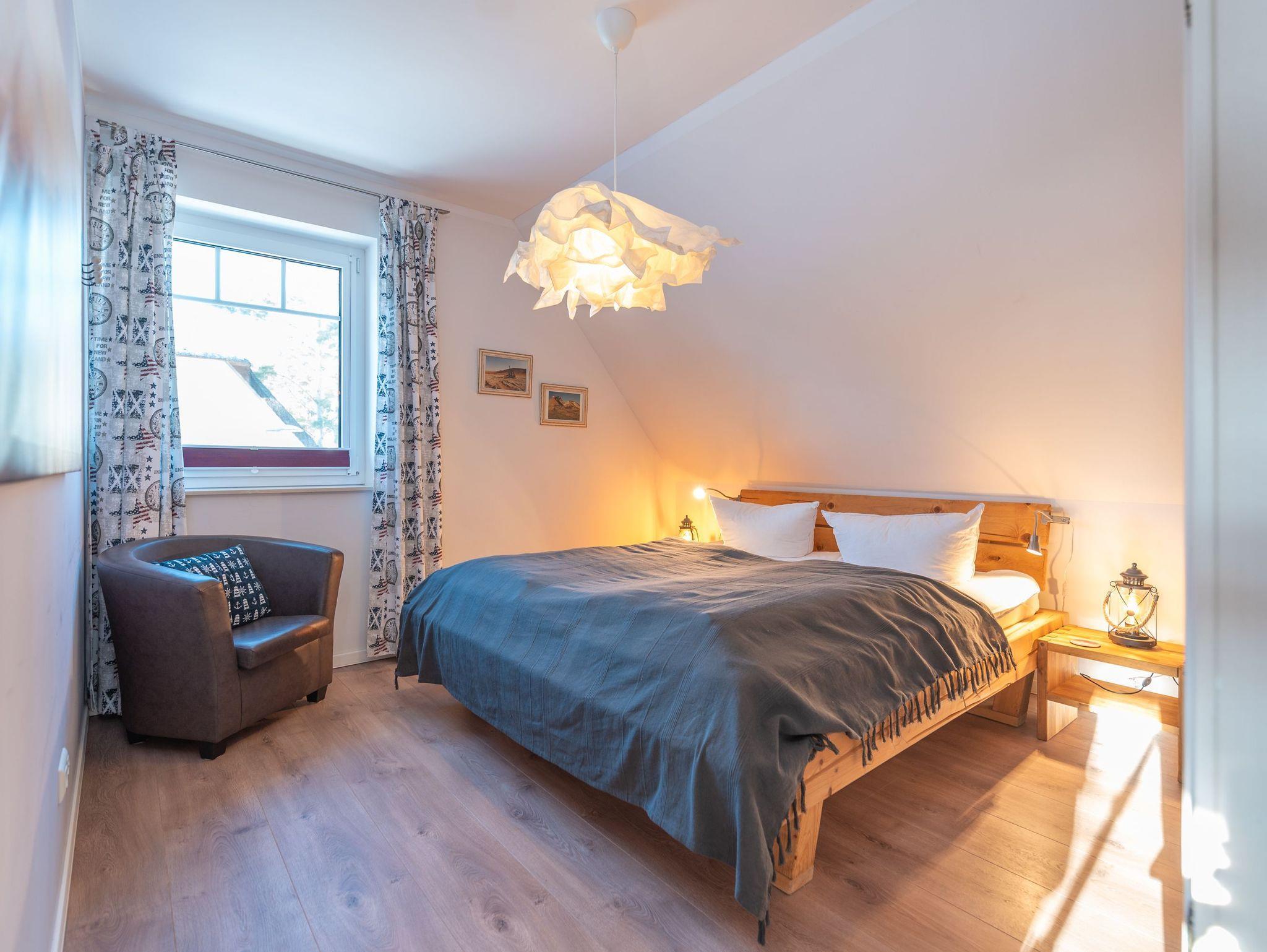 Im Obergeschoss befinden sich zwei liebevoll eingerichtete Schlafzimmer: das erste mit einem komfortablen Doppelbett und das zweite mit zwei Einzelbetten, die eine ruhige und erholsame Nacht versprechen. Ein Badezimmer mit Dusche, WC und Waschmaschine ist ebenfalls in der oberen Etage vorhanden.