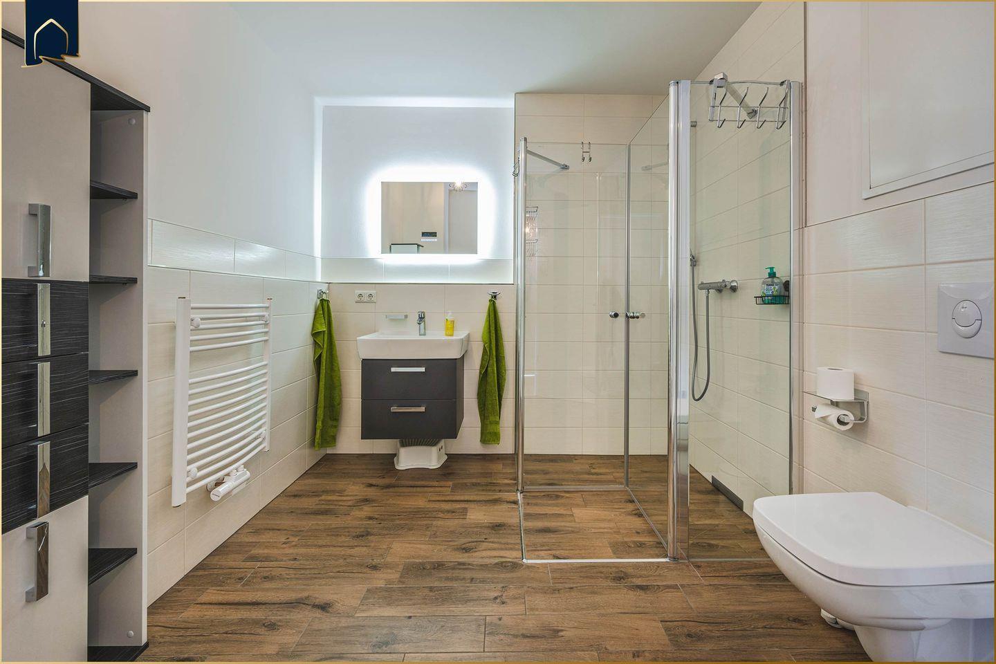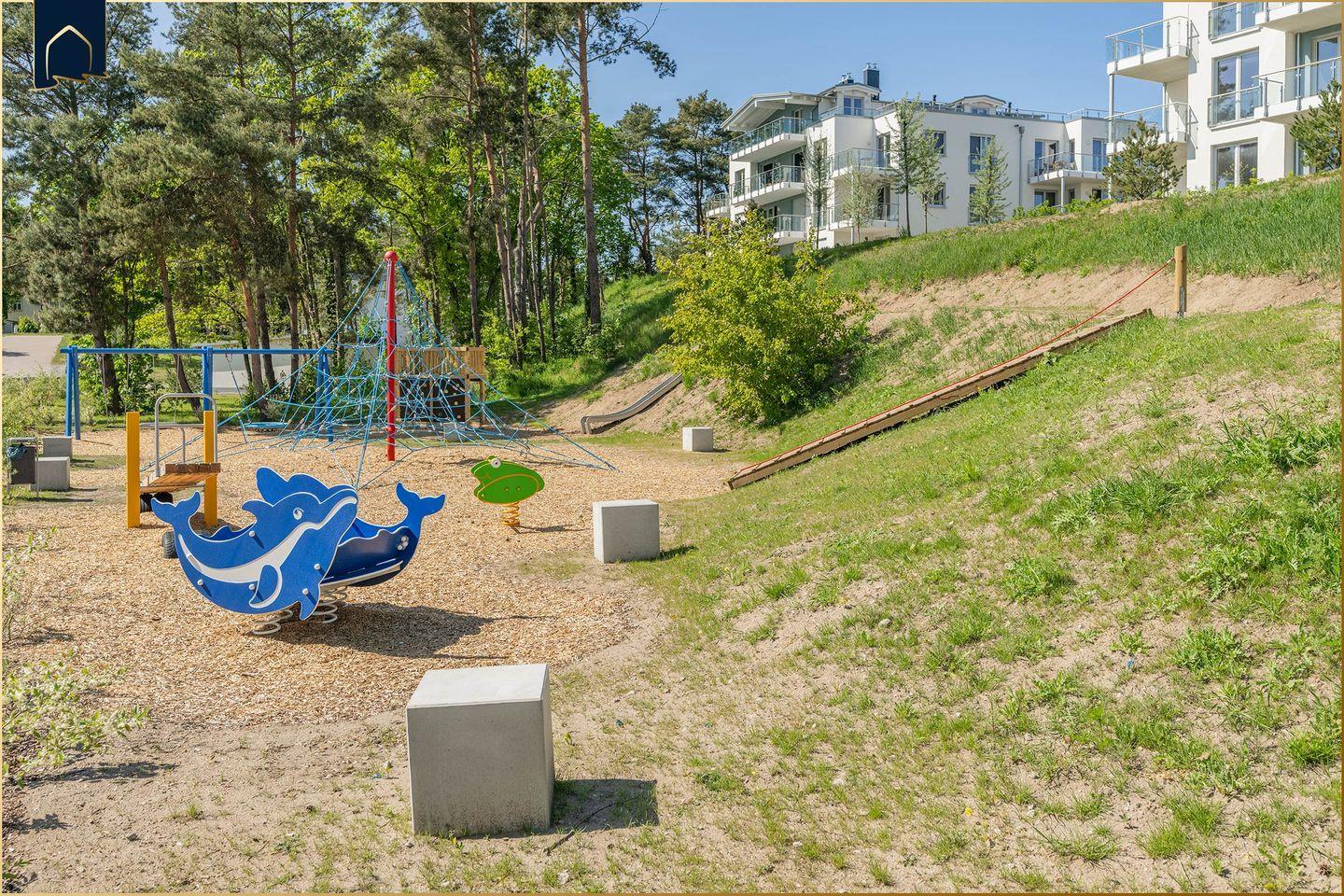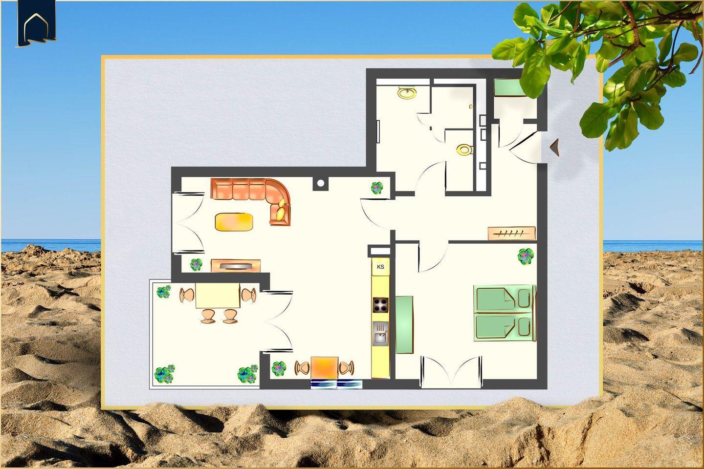Besonderes Highlight ist der kleine, aber feine Wellnessbereich mit Sauna und Ruheraum – ideal für erholsame Momente nach einem langen Strandspaziergang oder einem aktiven Tag auf dem Golfplatz (nur 4 km entfernt). Für Kinder gibt es in der Nähe einen Spielplatz, während Fahrradfreunde den abschließbaren Fahrradabstellraum schätzen werden. Ein privater Parkplatz gehört ebenfalls zur Wohnung, was die Anreise mit dem Auto erleichtert.