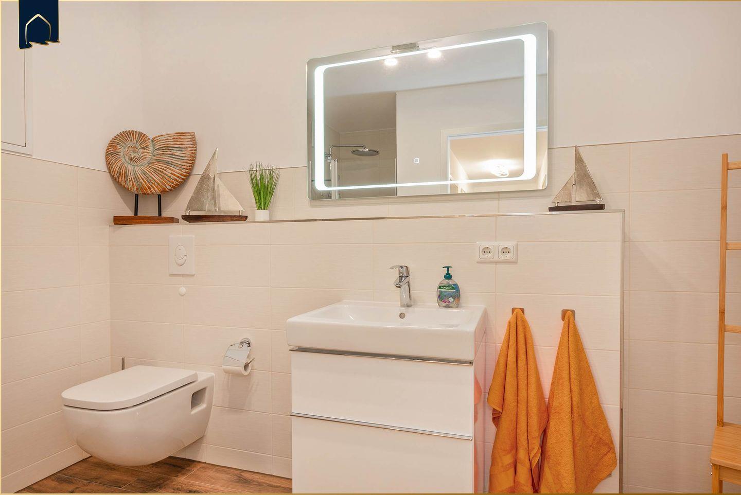 Die moderne Ferienwohnung Heimat Hafen in Zirchow bietet auf 95 m² Platz für bis zu vier Personen. Mit zwei Schlafzimmern, zwei Bädern, offenem Wohn- und Essbereich, bodengleicher Dusche, Balkon, Gartenblick sowie Sauna, Fitnessraum, Spielzimmer, WLAN und Privatparkplatz eignet sie sich bestens für Familien und Erholungssuchende.