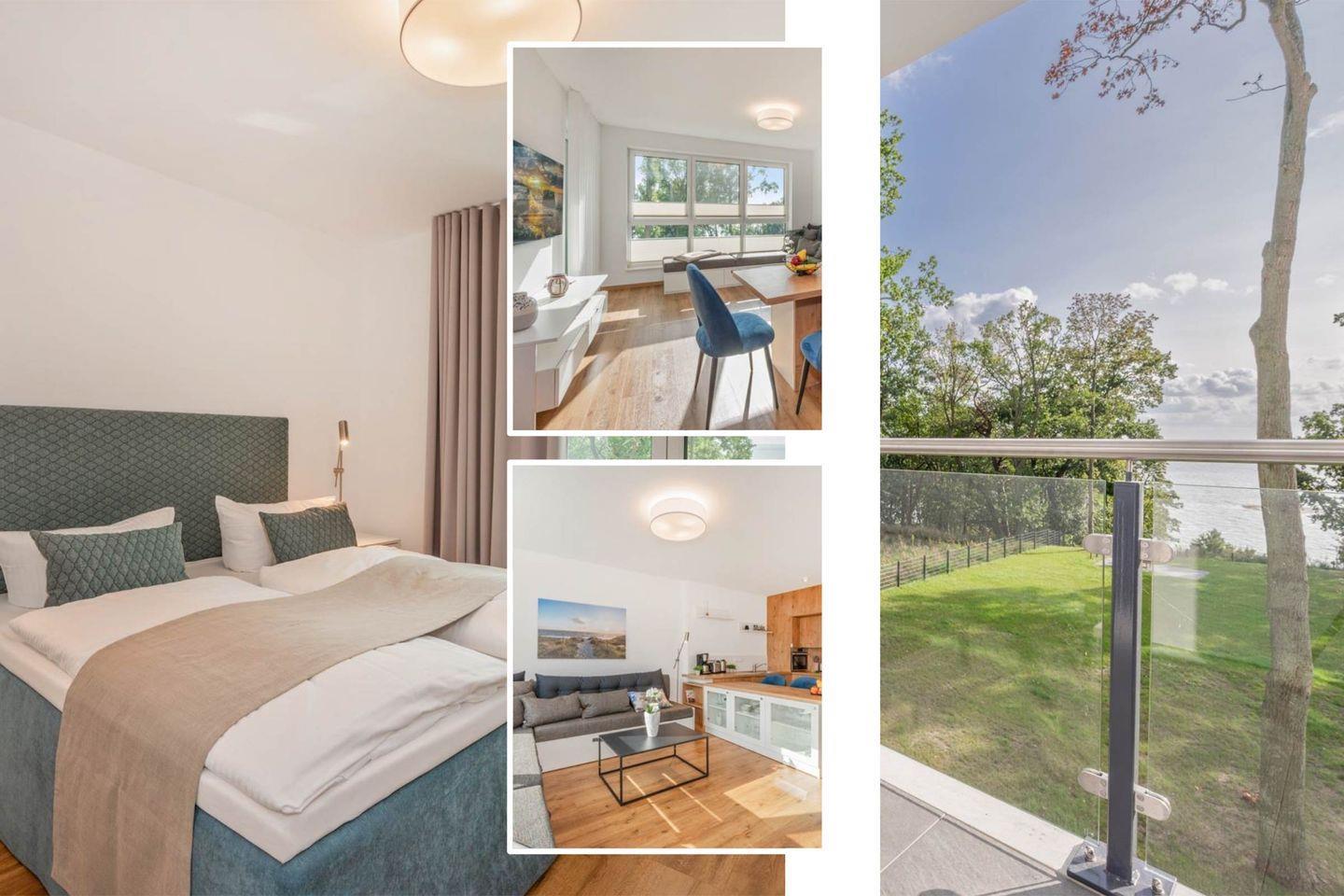Die modern ausgestattete Ferienwohnung Haffblick 8 in Zirchow bietet auf 61 m² Platz für bis zu vier Personen. Genießen Sie einen außergewöhnlich guten Seeblick vom überdachten Balkon, komfortable Wohnbereiche sowie zahlreiche Annehmlichkeiten wie WLAN, Fußbodenheizung, eine offene Küche, Privatparkplatz und Zugang zu einem Garten mit Spielplatz.