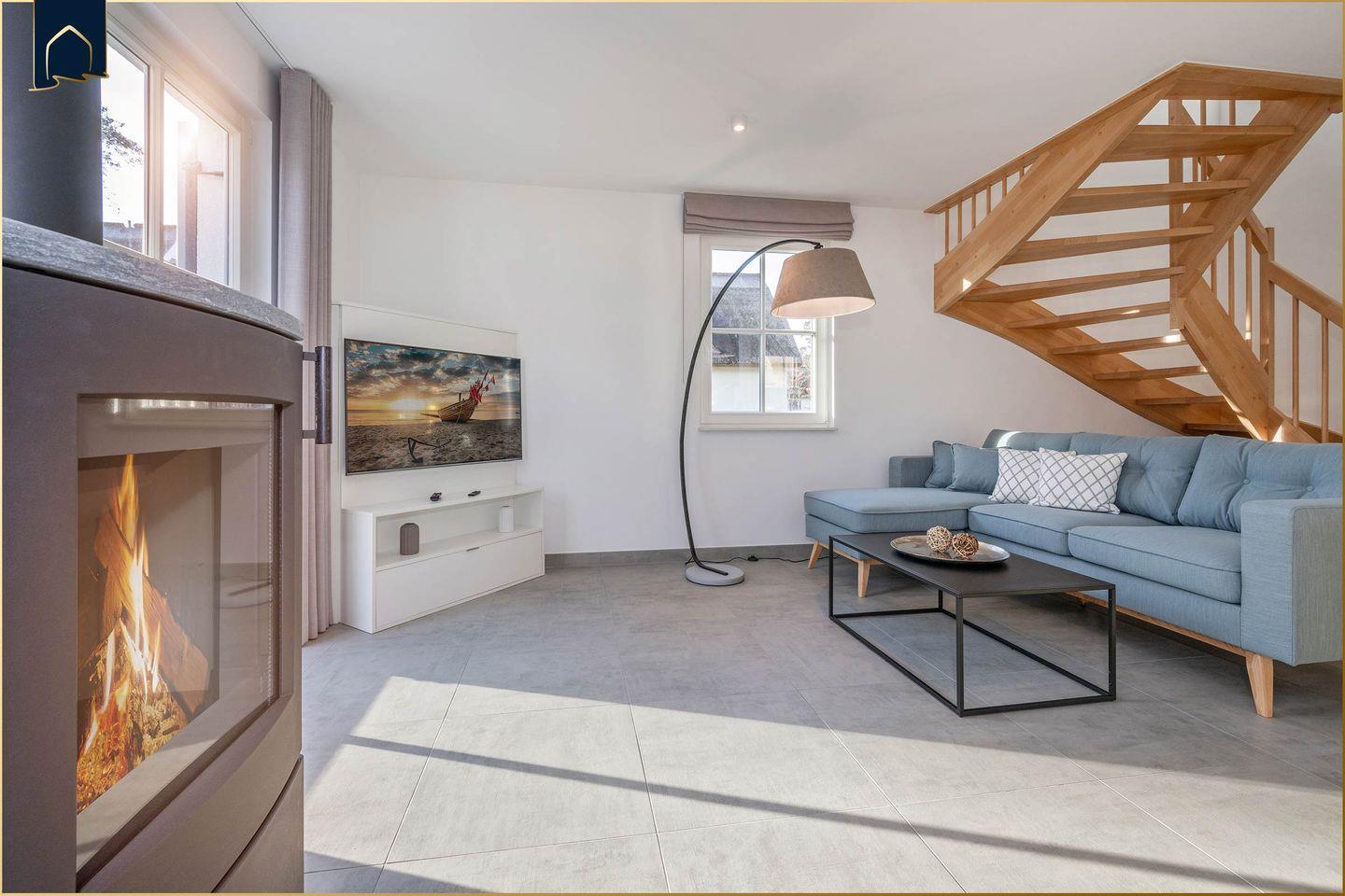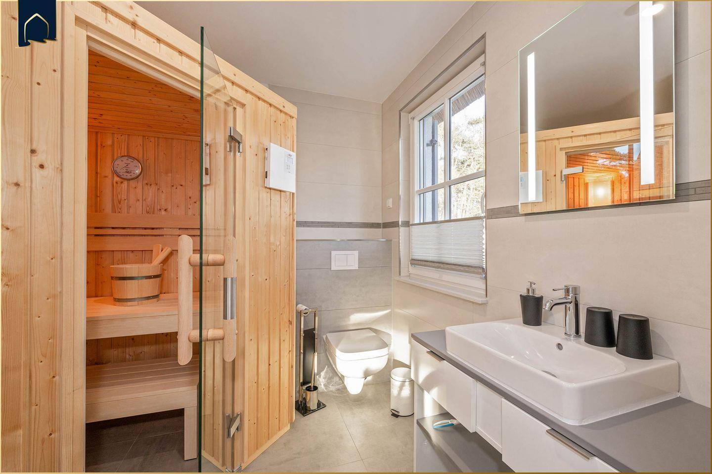 Dieses freistehende Ferienhaus vereint modernen Komfort mit idyllischer Lage – perfekt für Familien, Paare oder Aktivurlauber. Auf rund 88?m² Wohnfläche über zwei Etagen erwarten Sie stilvoll eingerichtete Räume mit viel Tageslicht. Zwei gemütliche Schlafzimmer bieten Platz für bis zu 4 Personen. Ein helles Badezimmer mit bodengleicher Dusche sowie ein zusätzliches Gäste-WC sorgen für extra Komfort. Das Wohnzimmer mit Sofaecke und Kamin lädt zu entspannten Abenden ein. In der voll ausgestatteten Küche mit Backofen, Geschirrspüler, Mikrowelle und großem Esstisch können Sie nach Herzenslust kochen. Für noch mehr Wohlgefühl sorgt die private Sauna – ideal nach einem langen Strandtag oder einer Wanderung im Wald.