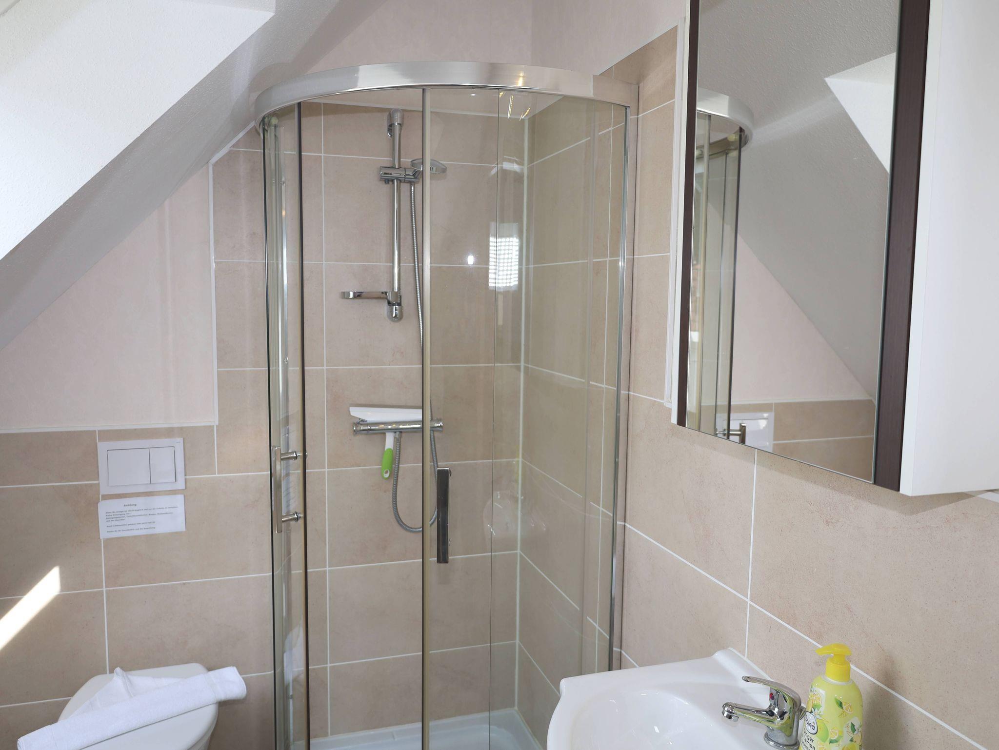 Auch hier steht Ihnen ein helles Badezimmer mit Dusche und WC zur Verfügung.