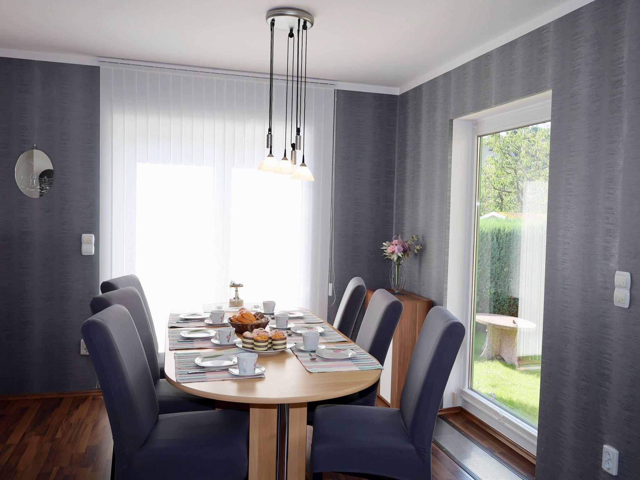 Das Wohnzimmer lädt mit seiner gemütlichen Couch, dem knisternden Kamin und dem Fernseher sowie kostenlosen W-Lan zu entspannten Abenden ein. Am großen Esstisch finden bis zu sechs Personen gemeinsam Platz für ein geselliges Frühstück oder ein Abendessen.