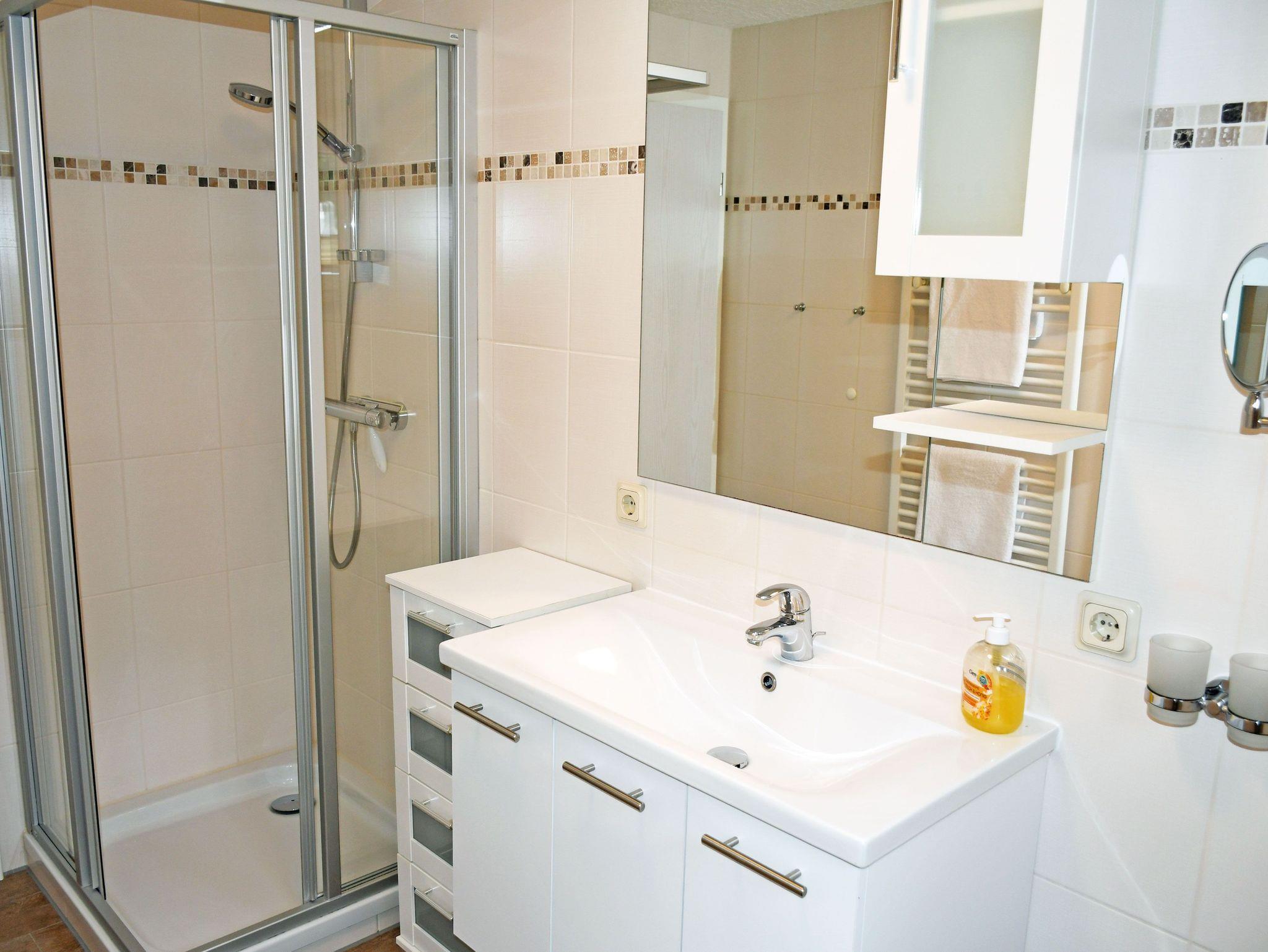 Bei Ihrer Anreise liegen frische Handtücher bereit und die Betten sind selbstverständlich bereits mit Bettwäsche bezogen. Das helle Bad ist mit Dusche, WC, Föhn und Waschtisch ausgestattet und verfügt über Tageslicht sowie Handtuchwärmer. Gäste der Ferienwohnung können im Garten auf der Wiese grillen, Gartenmöbel und Grill sind vorhanden.