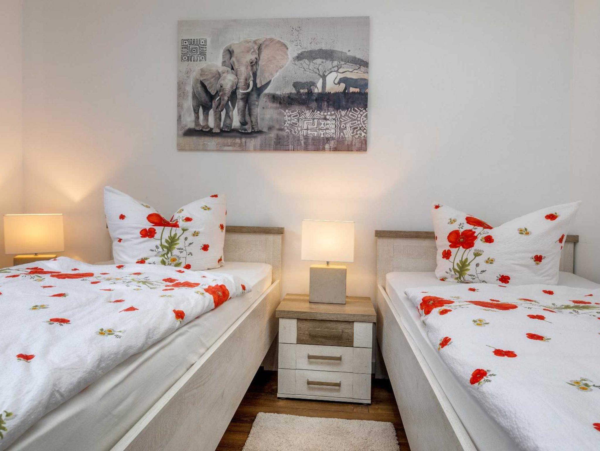 Die Ferienwohnung Mohnblume liegt ebenerdig und ist auch für Rollstuhlfahrer geeignet. Die Wohnfläche beträgt 65 qm und kann 4 Personen ganzjährig beherbergen. Die 2019 neu renovierte Wohnung gliedert sich in 2 Schlafzimmer, Wohnzimmer, Küche und Bad mit ebenerdiger Dusche. Das Elternschlafzimmer ist mit einem Boxspringbett ausgestattet, das Kinderzimmer hat zwei Einzelbetten und einen zusätzlichen Fernseher.