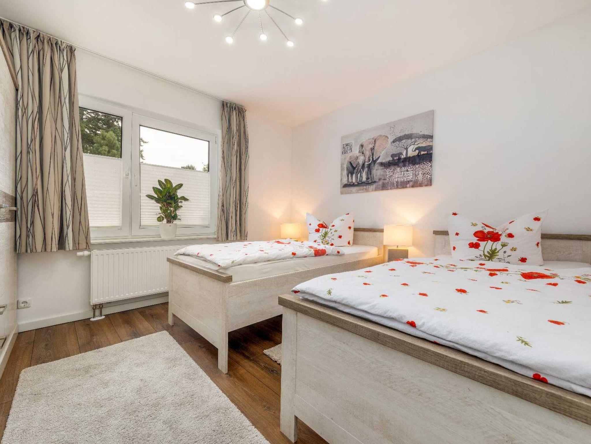 Ferienwohnung mit 2 Schlafzimmern im EG, barrierefrei, 1 Wohnzimmer, 1 Küche, 1 Bad mit ebenerdiger Dusche, Gartennutzung mit Grillmöglichkeit und Feuerstelle, Fahrräder vorhanden im abschließbaren Abstellraum sowie Pkw-Stellplatz