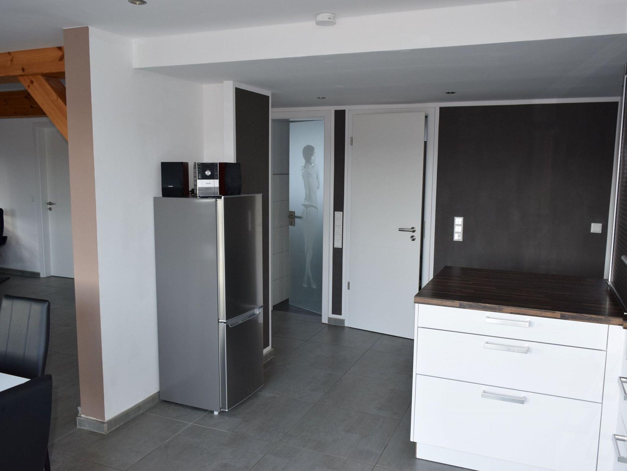 Schlafsofa, das ausgezogen mit einem Maß von ca. 90 x 200 cm eine bequeme Schlafgelegenheit für eine weitere Person bietet, komplettieren die moderne und doch gemütliche Ferienwohnung!