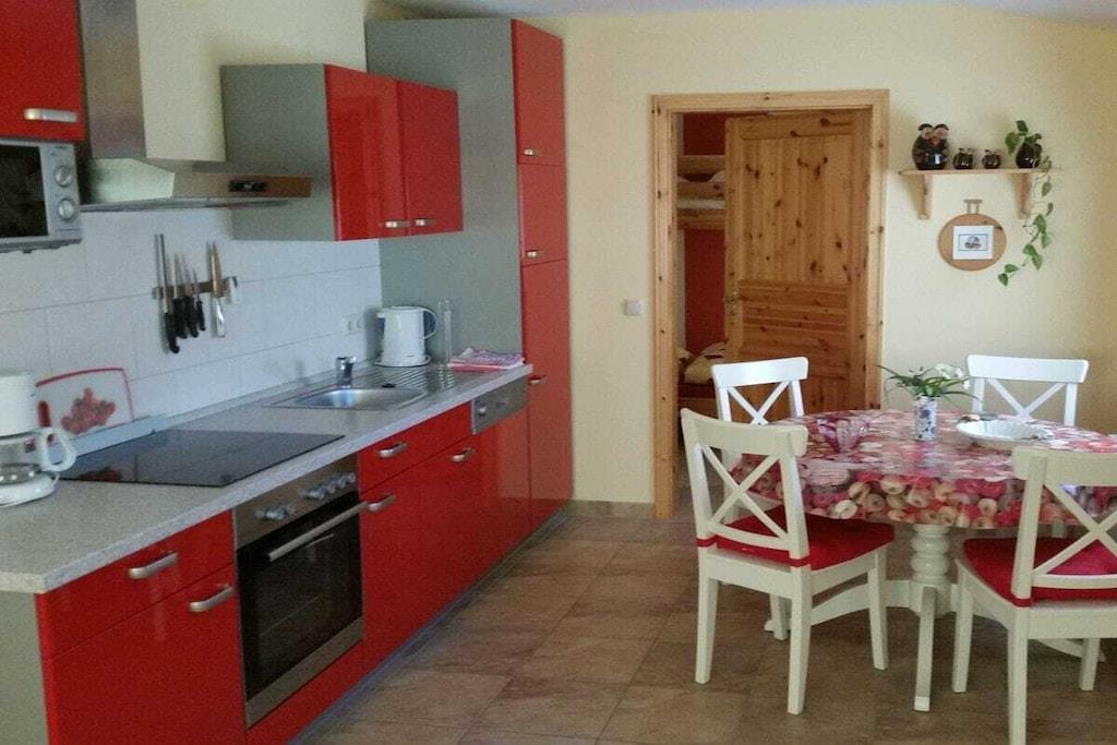 Kære gæster, vores 55 m² store ferielejlighed ligger cirka 200 m fra den østlige bred af Plausøen. Nærheden til søen og den rolige, rolige beliggenhed i udkanten af byen er det, der gør denne indkvartering så speciel. Der er en stor eng (2000 m²), hvor du og dine børn og hunde kan løbe frit rundt. I denne behagelige atmosfære kan I slappe af og nyde smukke dage i naturen. Den tilstødende terrasse tilbyder en vidunderlig udsigt over hestefolden.
