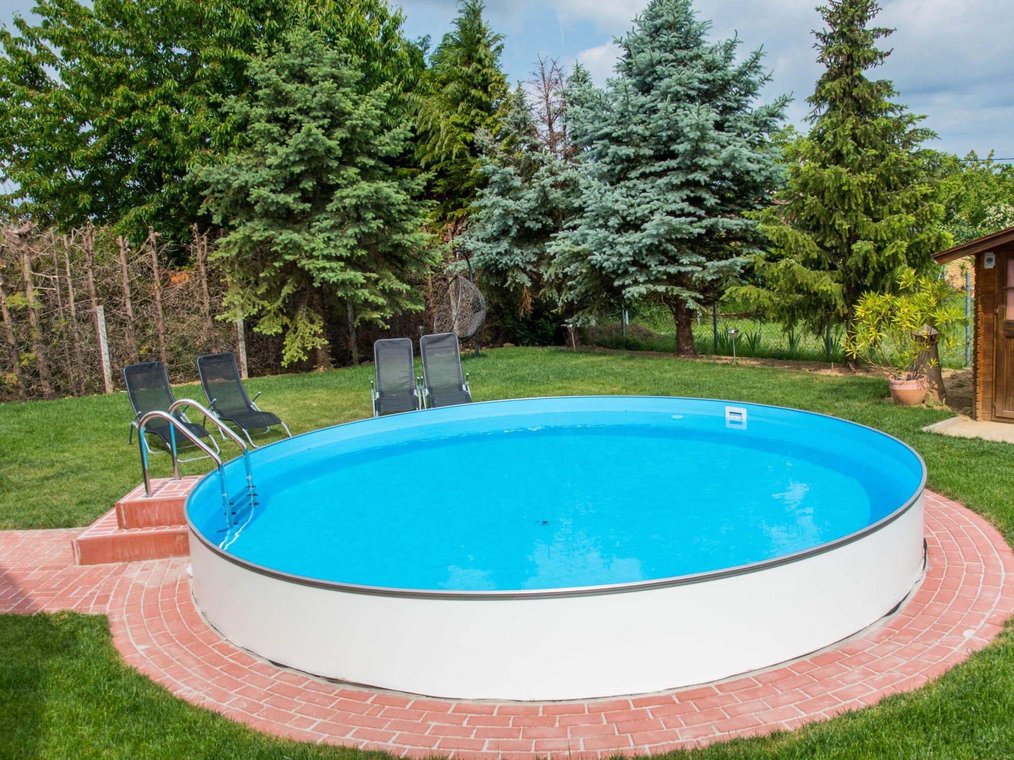 The pool is permanently installed and has a diameter of 5 metres and a water depth of 1.20 metres.