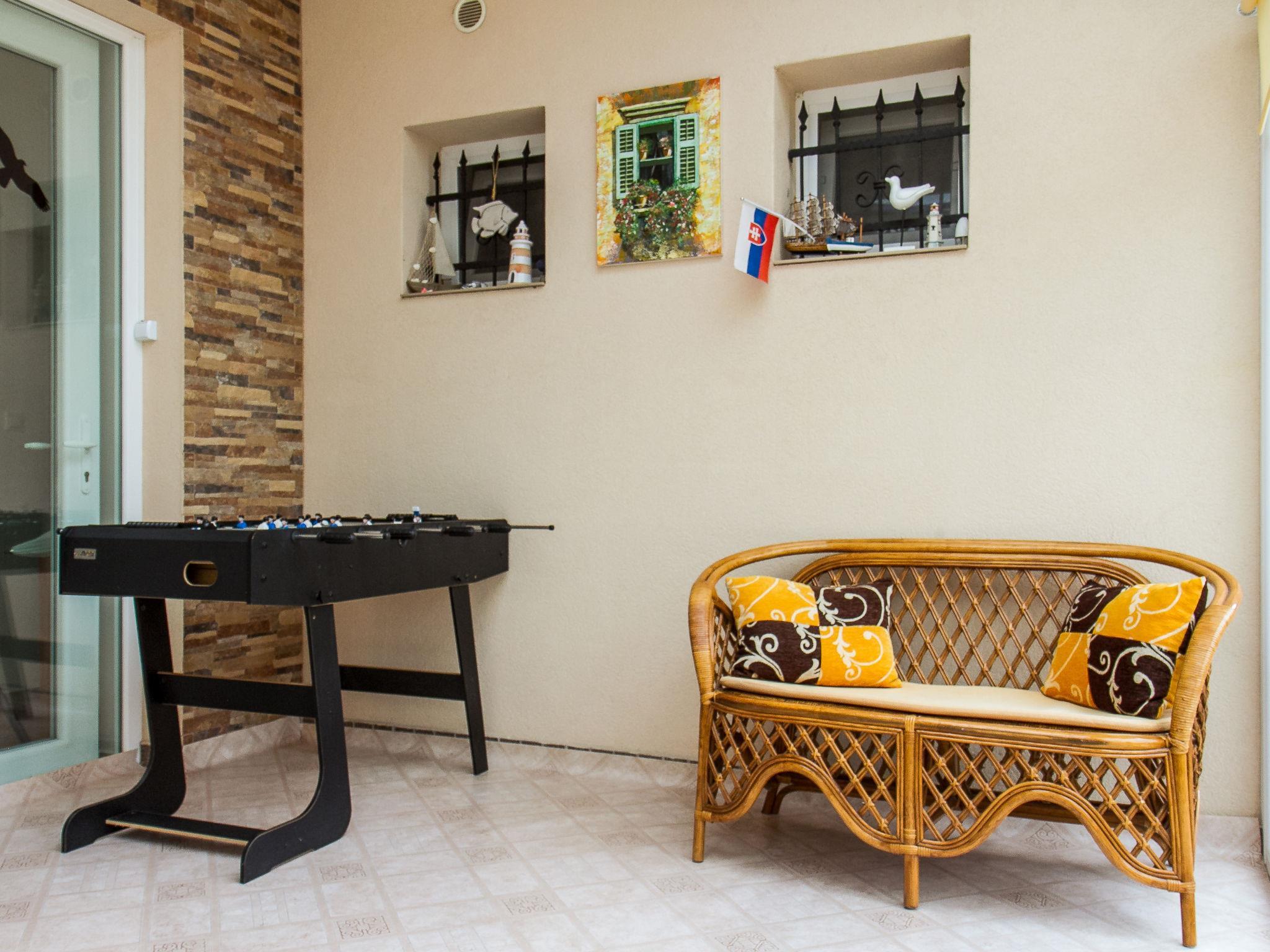 "Twin back", 3-room semi-detached house 75 m2. Beautiful furnishings: living/dining room with TV and air conditioning. Exit to the terrace. 1 room with 1 french bed. 1 room with 2 beds. Open kitchen (3 hot plates, oven). Shower/WC. Heating (extra). Terrace. Terrace furniture, barbecue, deck chairs. Facilities: washing machine. Parking (fenced). MA19014636