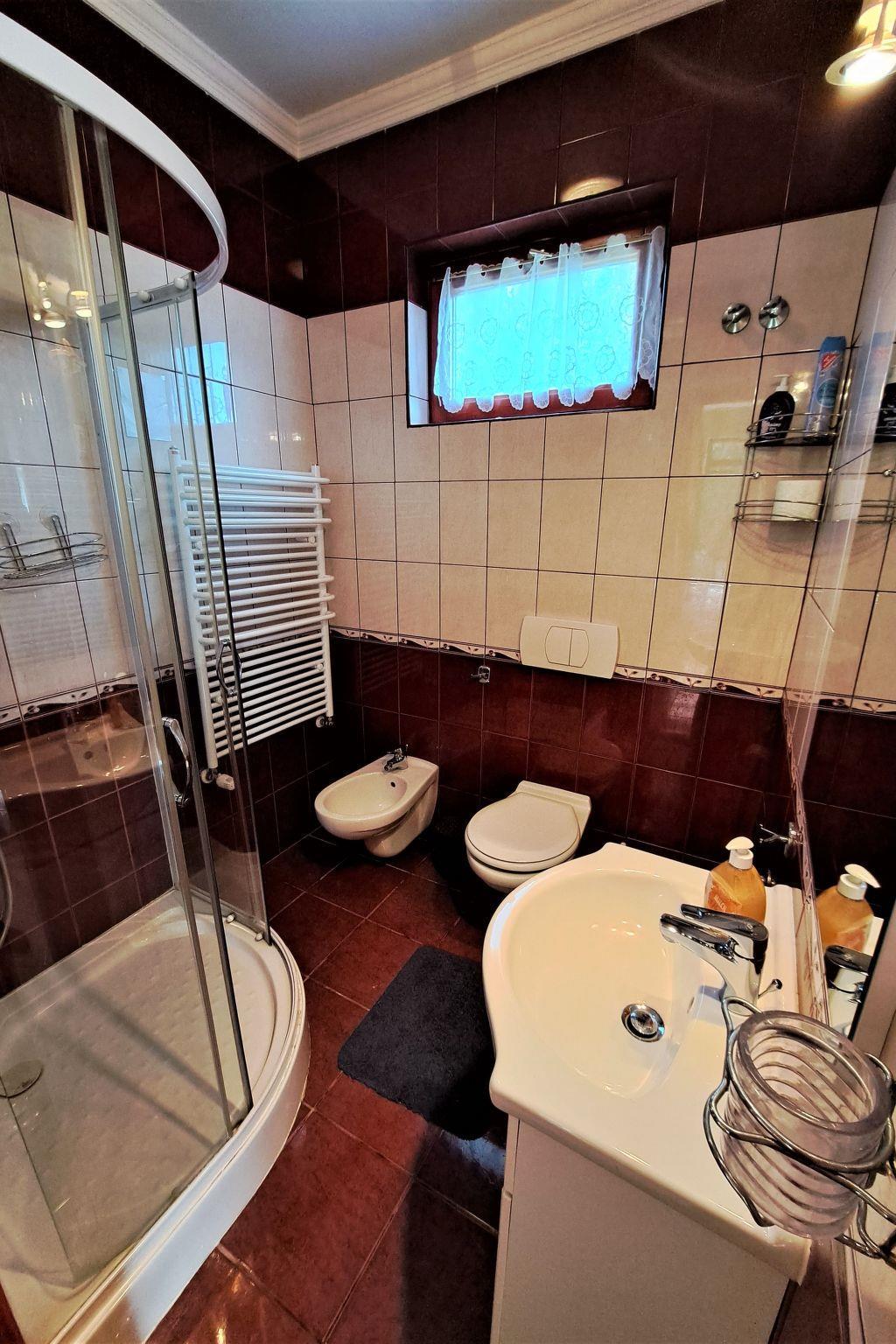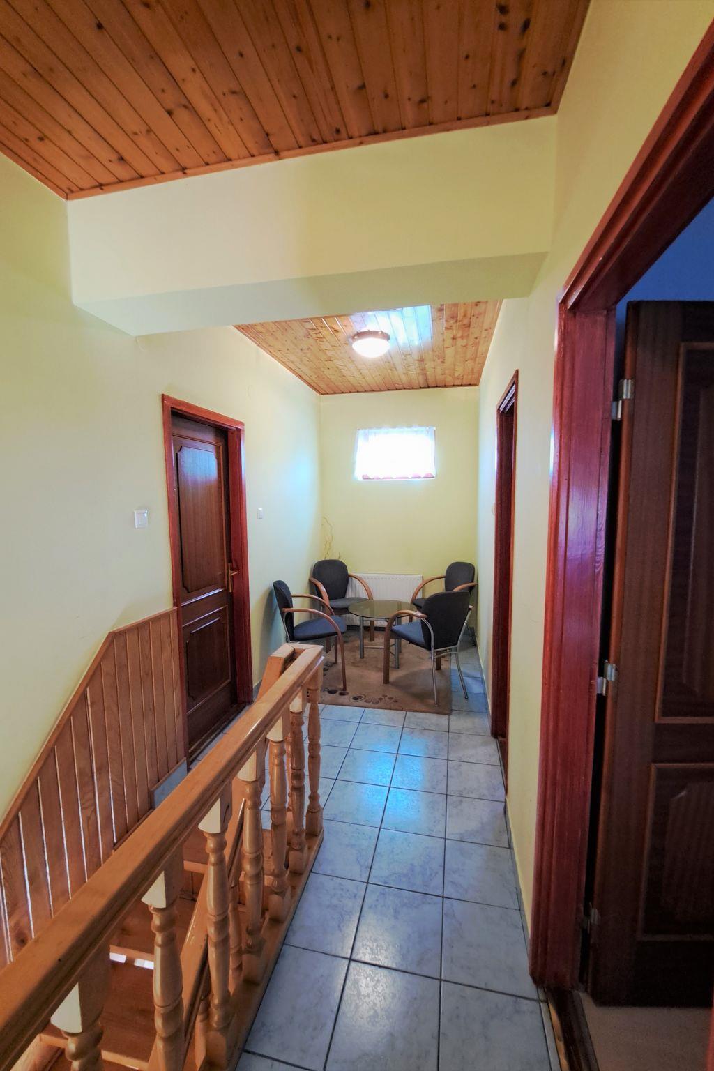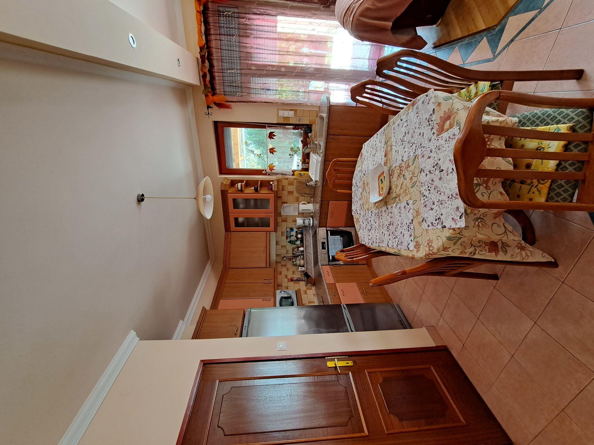 "Boros", 4-room house 90 m2 on 2 levels. Practical furnishings: living room with dining table, satellite TV and hi-fi system. Exit to the terrace. Open kitchen (oven, dishwasher, 4 ceramic glass hob hotplates, toaster, kettle, microwave, freezer, electric coffee machine). Shower/WC. No heating option. Top floor: 1 room with sloping ceilings with 1 french bed. 1 double bedroom with sloping ceilings. 1 room with sloping ceilings with 1 bed and 1 french bed (160 cm, length 200 cm). Bath/WC. Air-conditioning. No heating option. Parquet floors. Terrace partly roofed. Terrace furniture, deck chairs (2). Facilities: Internet (WiFi, free). Please note: non-smoking house. MA20009320