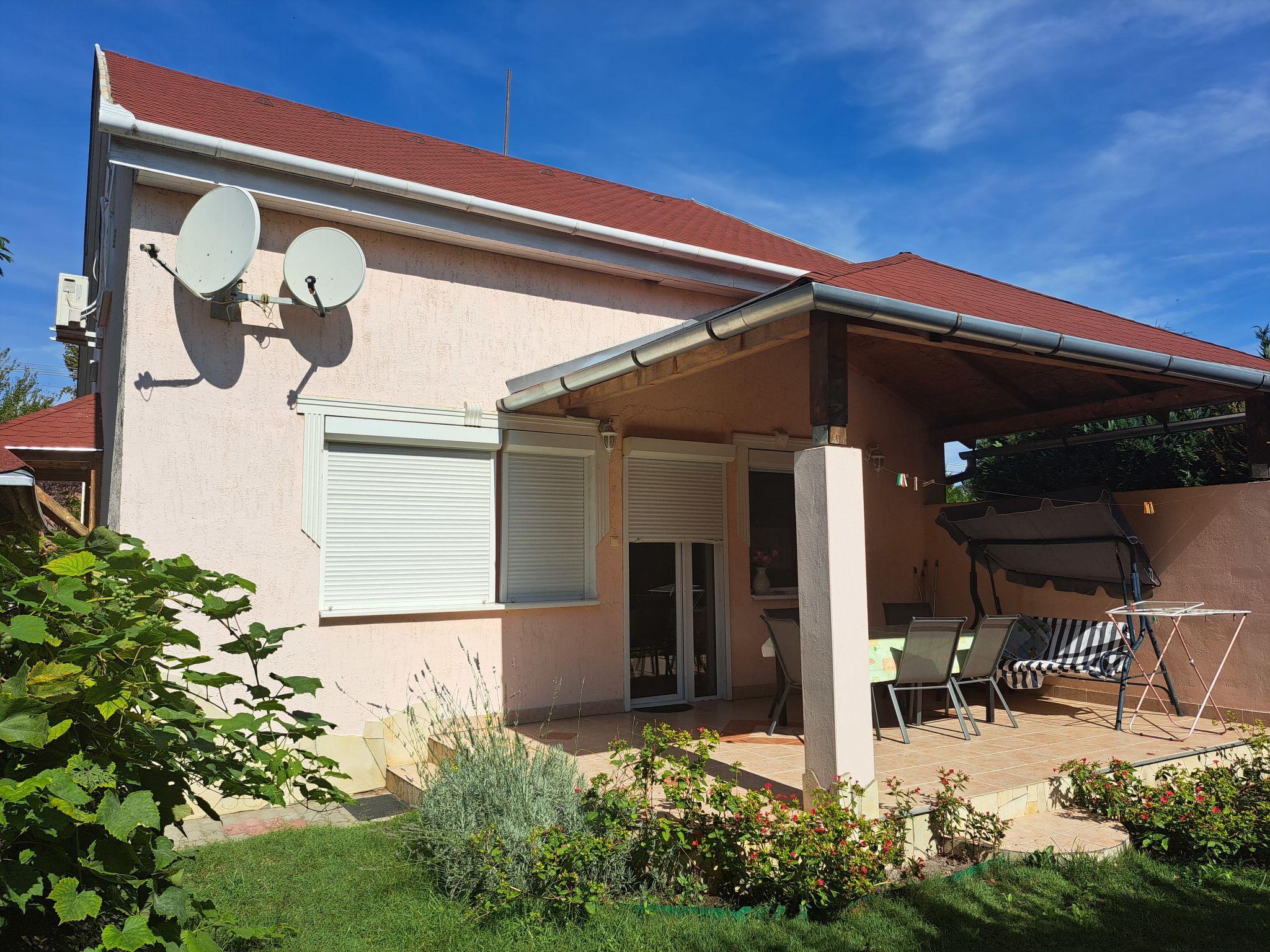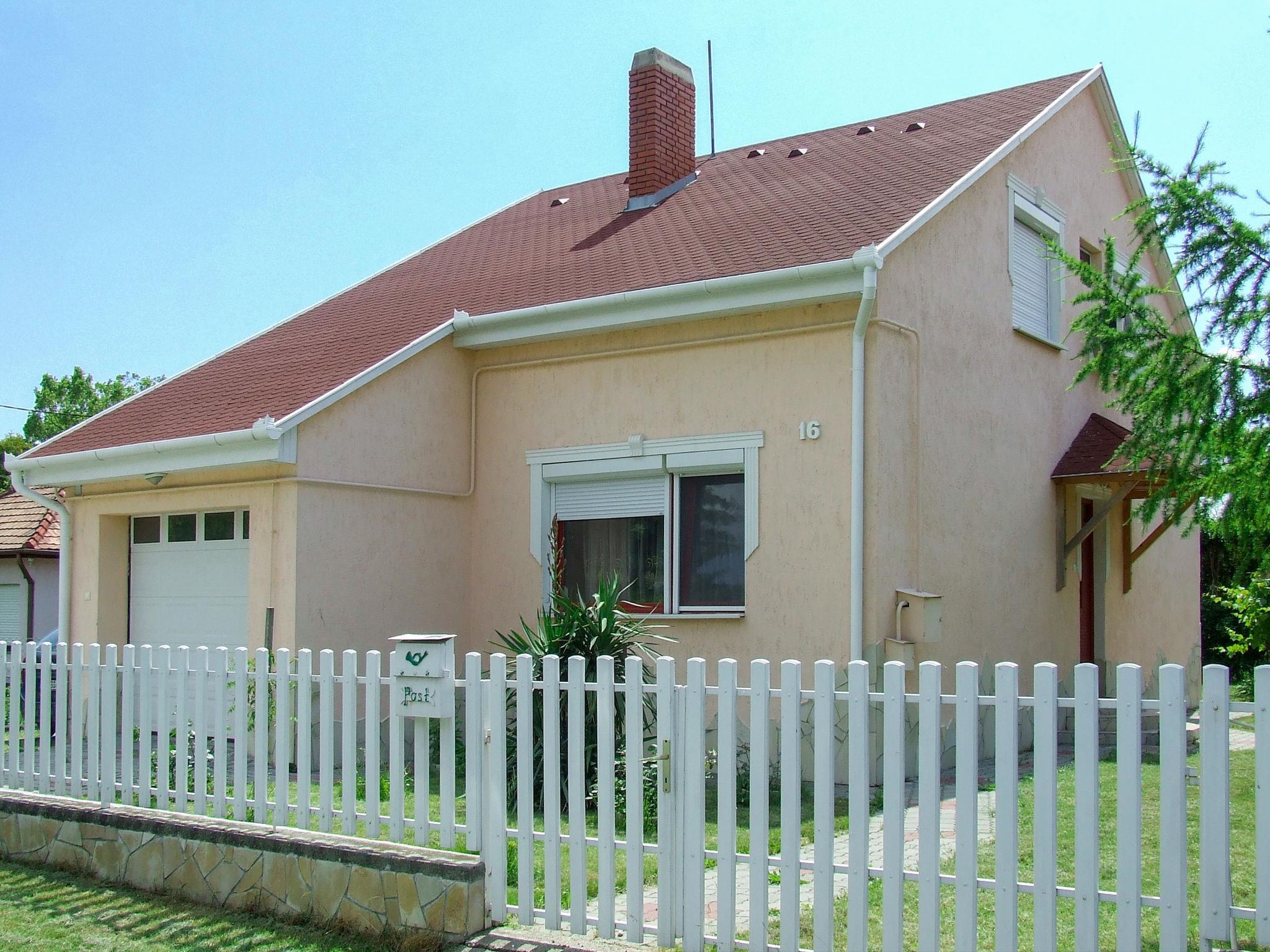 House "Boros", detached. 200 m from the centre of Balatonfenyves, 8 km from the centre of Fonyod, 50 km from the centre of Siofok, in the residential district, 400 m from the lake. Private: property 400 m2 (fenced) with lawn and trees. Arbour, garden furniture, barbecue, fireplace. Available: bicycles (2). Parking (for 3 cars) on the premises. Shop 100 m, restaurant 300 m, grass beach 400 m.