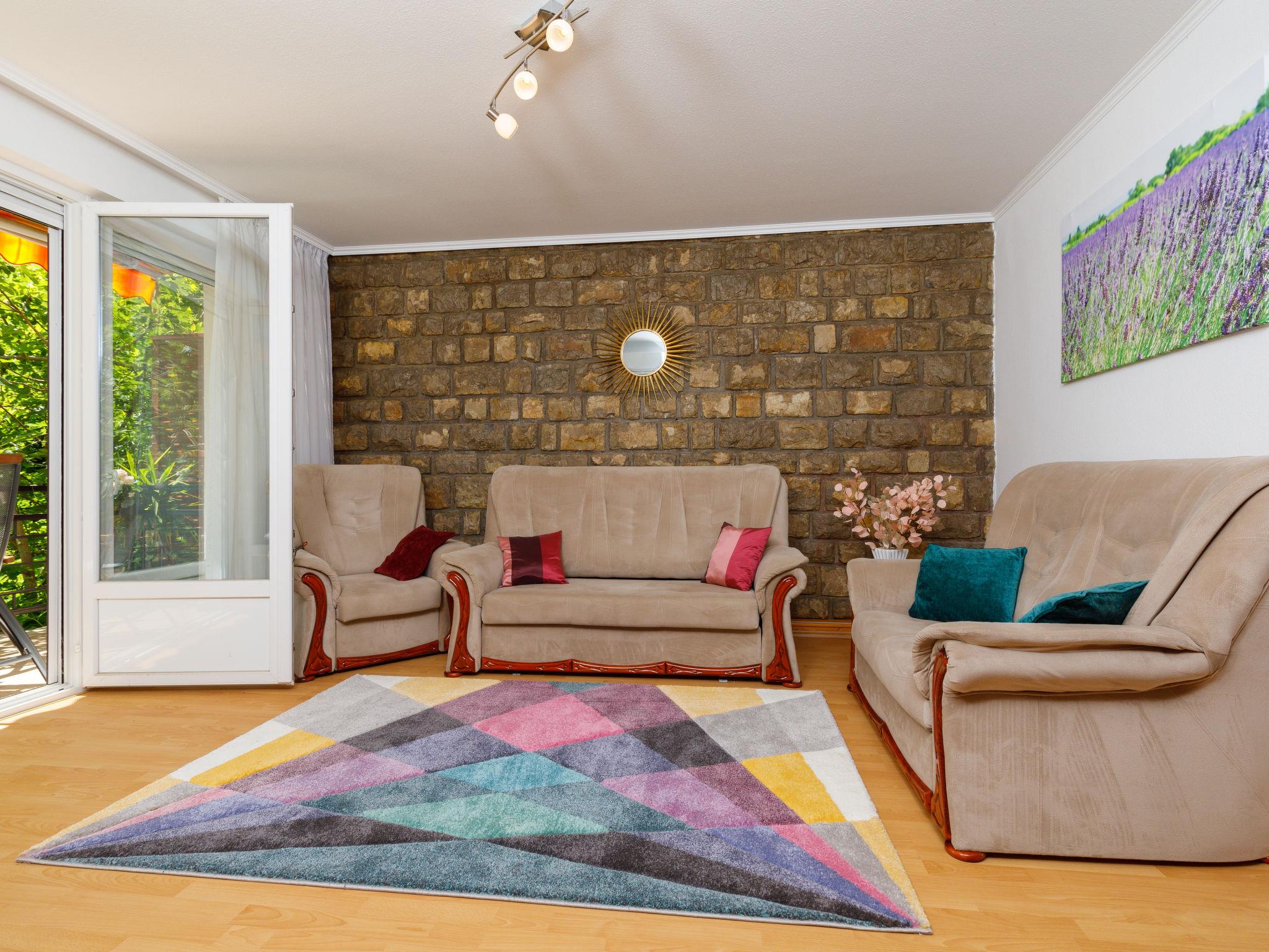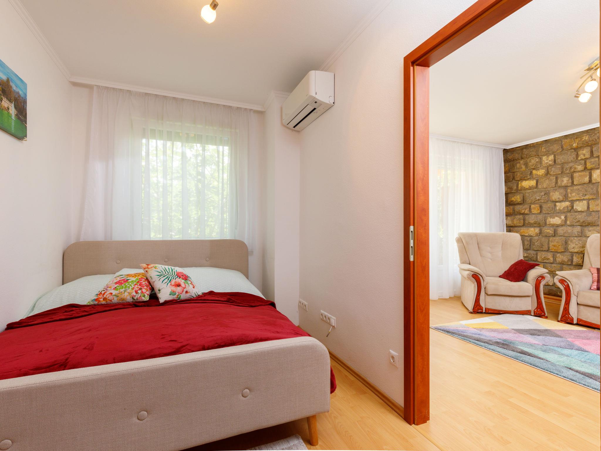 3-room apartment on the lower ground floor. Comfortable furnishings: living room with digital TV and flat screen. Exit to the balcony. 2 double bedrooms, each room with air conditioning. Kitchen (oven, dishwasher, 4 ceramic glass hob hotplates, toaster, kettle, microwave, freezer, electric coffee machine) with dining table. Shower/WC. Heating, electric heating. Facilities: Internet (WiFi). EG24097810