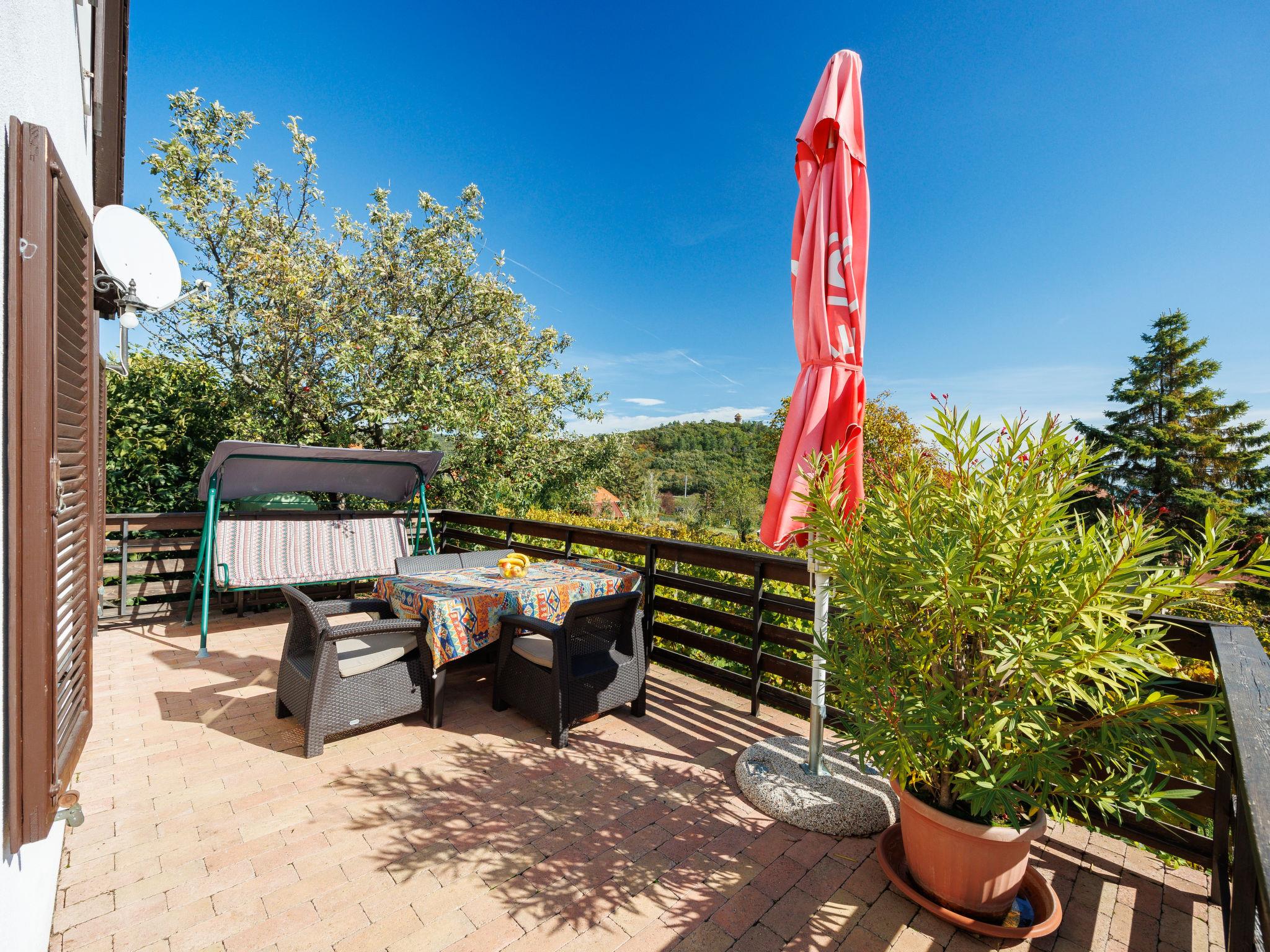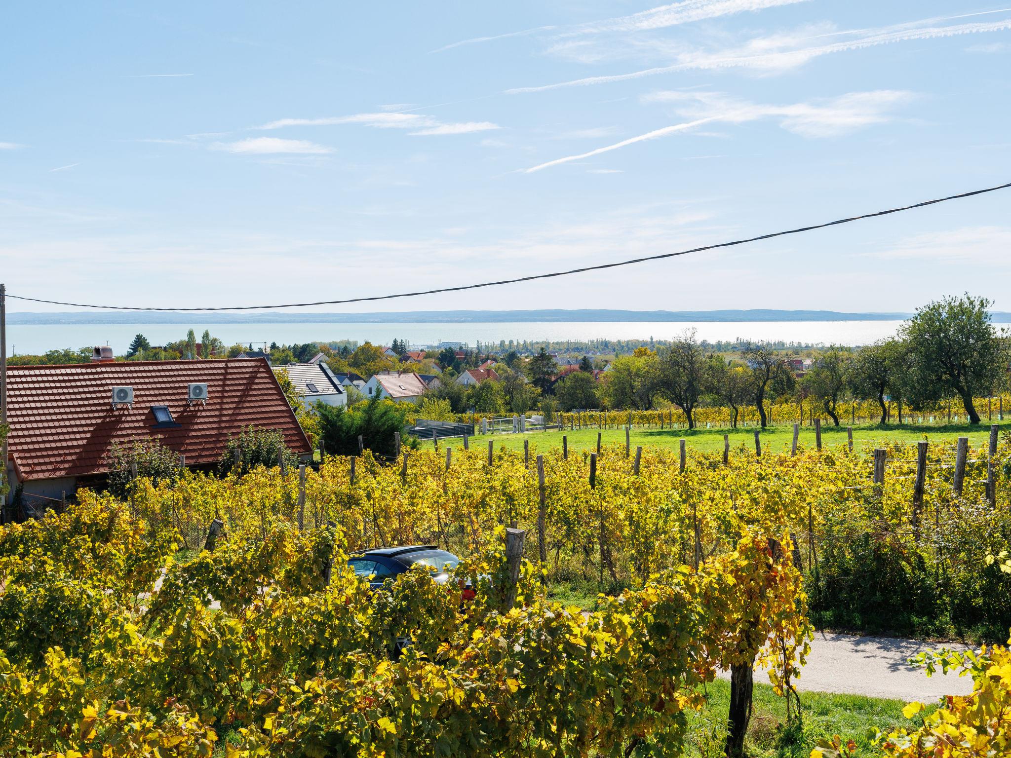 Lovas 9 km from Balatonfüred: House "Dul", detached, surrounded by vineyards. In the district of Lovas 8 km from the centre of Balatonfüred, 500 m from the centre of Lovas, 7 km from the centre of Balatonalmadi, in a sunny position on a slope, 1.5 km from the lake, 3 km from the beach. Private: property 1'000 m2 with wildlife garden, meadow, orchard. In the house: WiFi. Parking on the premises. Shop, restaurant 500 m, grass beach 2 km, indoor swimming pool 10 km.