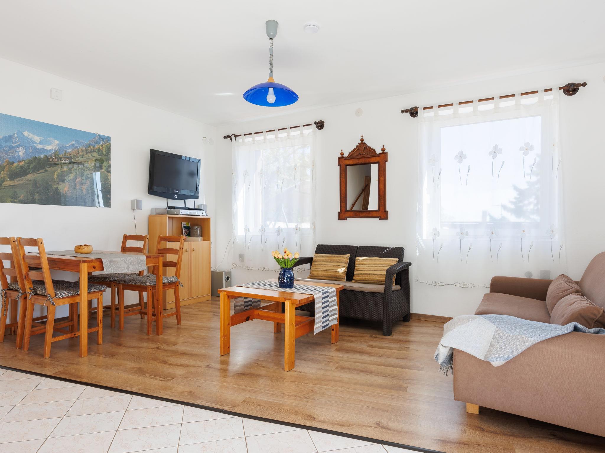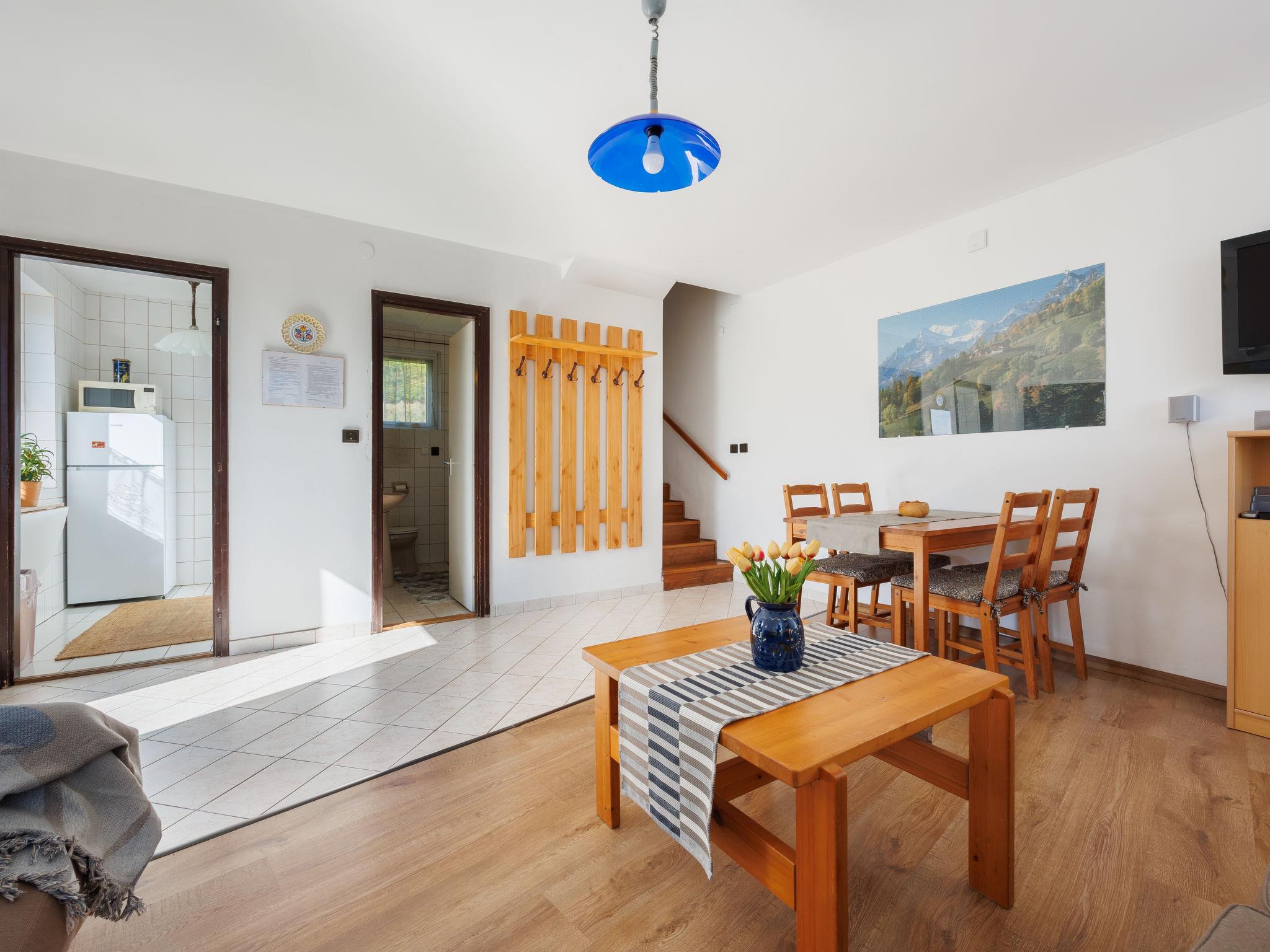 "Dul", 3-room house 80 m2 on 2 levels. Practical furnishings: living room with dining table, satellite TV and DVD. Small kitchen (4 gas rings, toaster, kettle, microwave, electric coffee machine). Bath/WC. No heating option. Top floor: with sloping ceilings, 1 room with 2 beds. 1 small room with 2 beds. Shower/WC. No heating option. Terrace 20 m2. Terrace furniture, barbecue (portable), deck chairs (2). View of the lake. Please note: non-smoking house. MA19004844