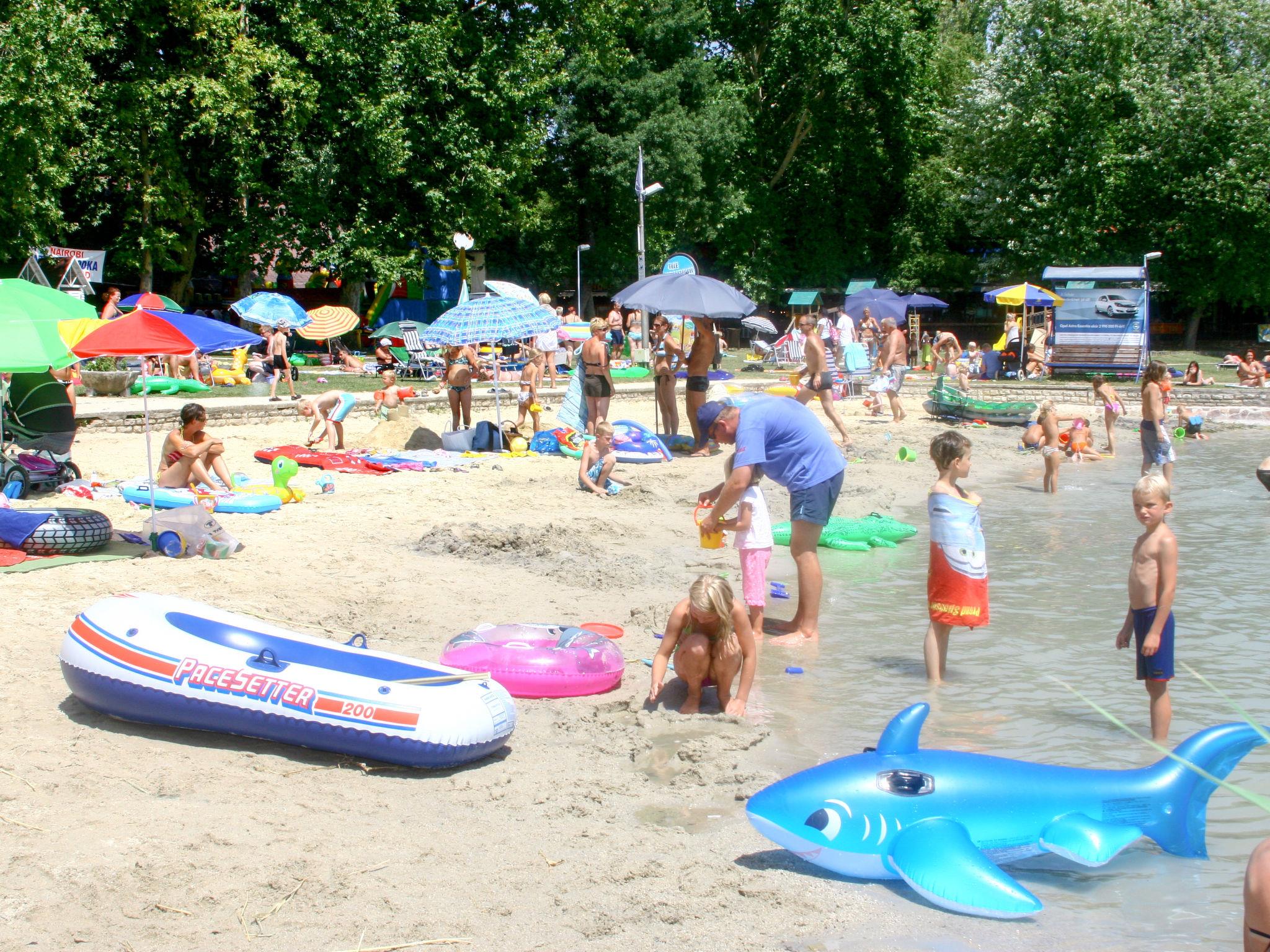 Child friendly holiday village "Balatontourist Füred". 1 km from the centre of Balatonfüred, on the outskirts, 400 m from the lake, direct access to the beach. For shared use: natural state property (fenced) with trees, meadow, swimming pool (25 x 10 m, seasonal availability: 23.Jun. - 03.Sep.). Children's pool, tennis (extra), table tennis, volleyball, volleyball court, children's playground. In the complex: reception, restaurant, bistro, WiFi (extra). Shopping facilities, boutique, washing machine (for shared use, extra), bicycle rental. Parking (extra) on the premises. Shop 600 m. Surf school, sailing school 400 m, minigolf 300 m. Nearby attractions: Tihany 6.5 km, Székesfehérvár 65 km, Budapest 130 km. Please note: childminding in the season. Groups of teenagers on request only.
