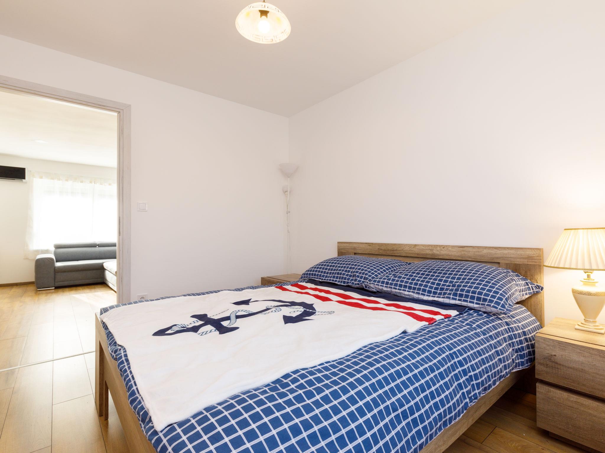 Modern furnishings: open large living/dining room with 1 pull-out bed (2 pers.), digital TV and air conditioning. Exit to the terrace. 1 room with 1 french bed (2 x 160 cm, length 200 cm). 1 room with 1 french bed (2 x 140 cm, length 200 cm). Open kitchen (4 ceramic glass hob hotplates, kettle, microwave, electric coffee machine). Exit to the terrace. Shower/WC. Air-conditioning. Balcony furniture. Facilities: iron, mosquito net, children's high chair, baby cot (extra). Internet (WiFi, free). Please note: non-smoking house. MA23056827