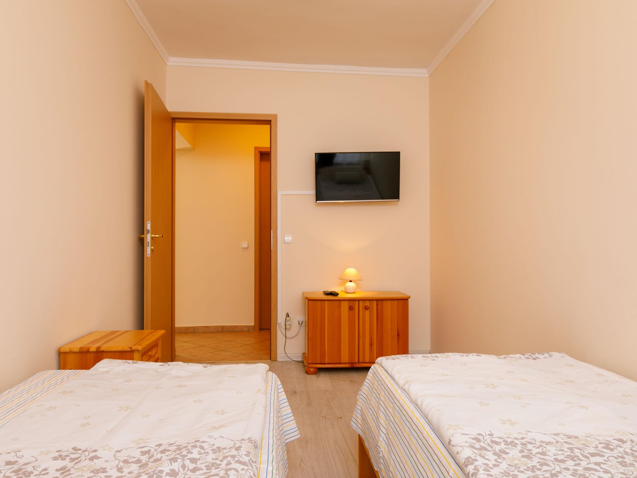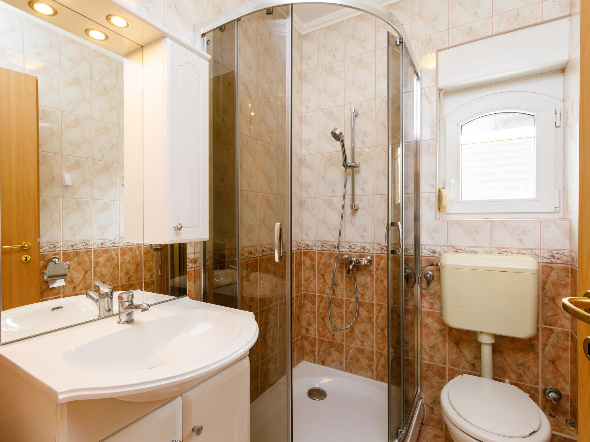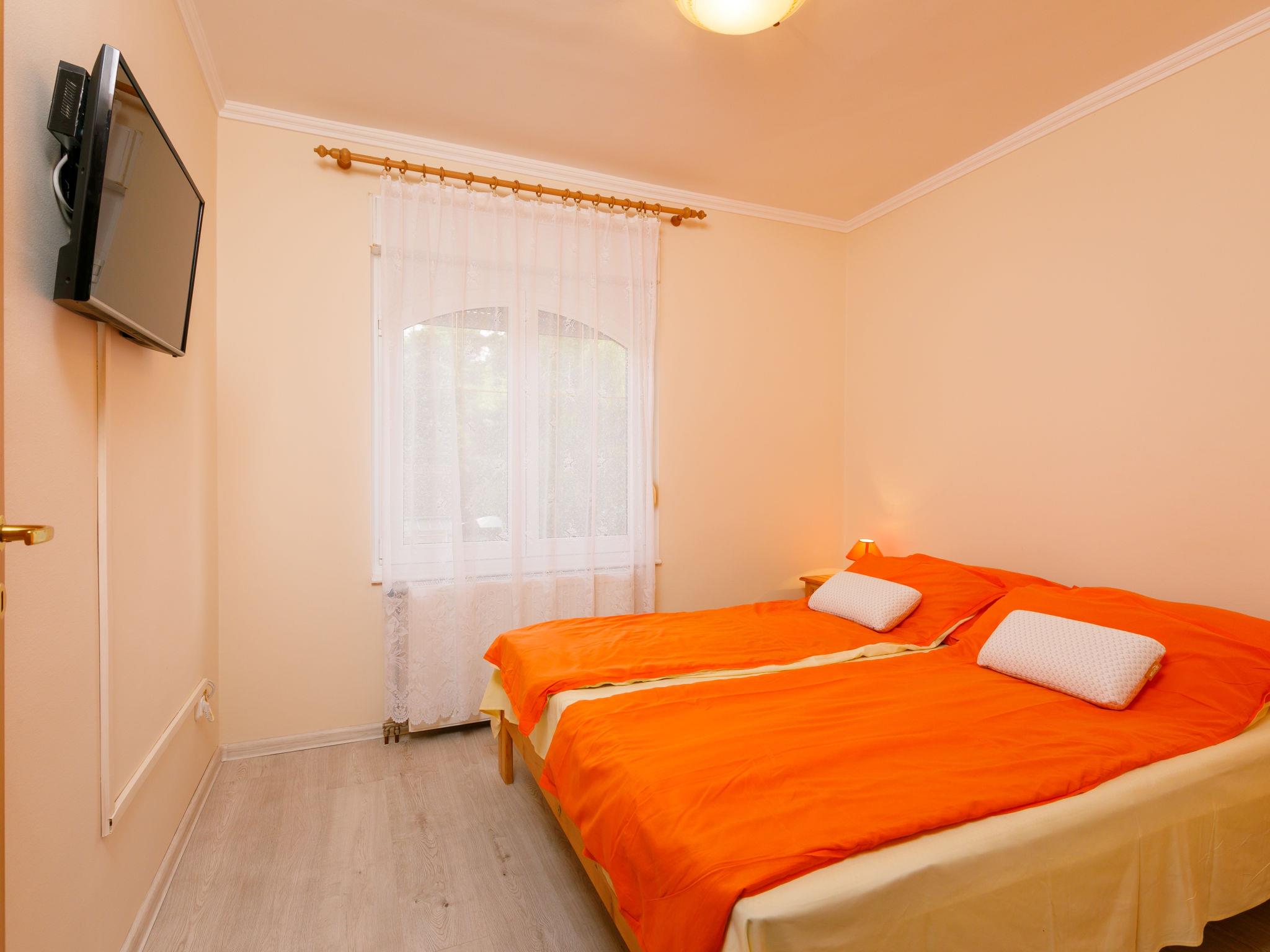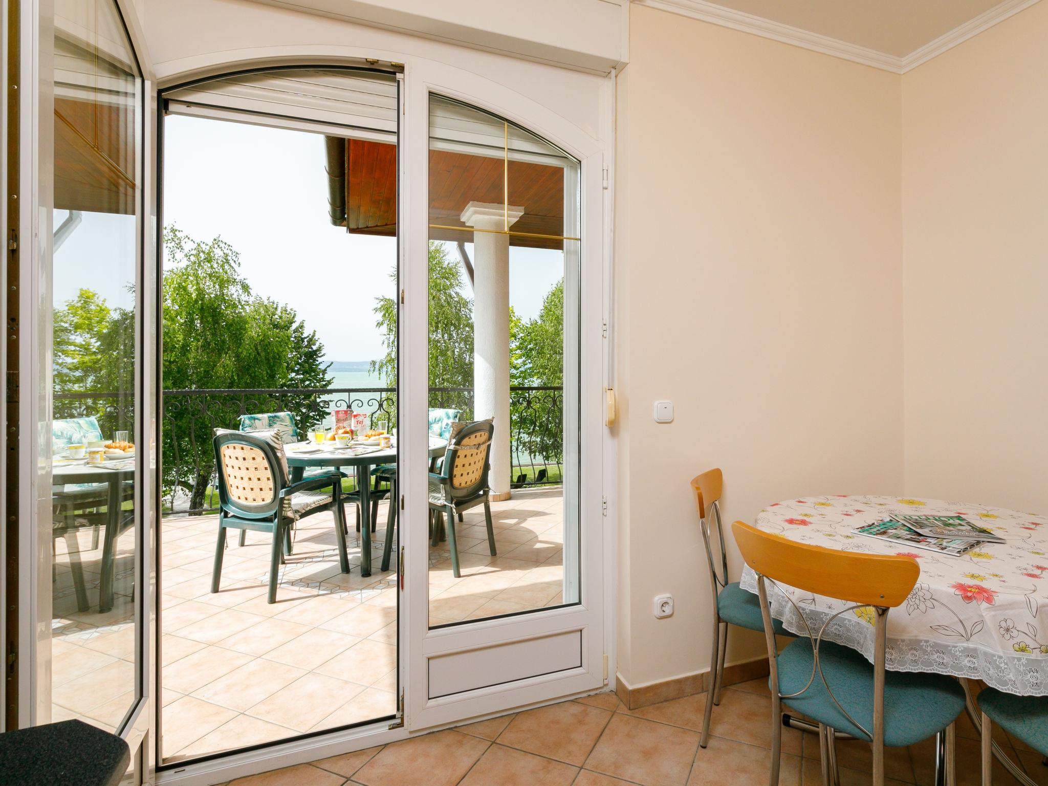 "Lakefront 1", 3-room apartment 45 m2, on the upper floor. Comfortable furnishings: dining room with dining table and air conditioning. Exit to the terrace. 1 room with 1 french bed (160 cm, length 200 cm), flat screen. 1 room with 2 beds (90 cm, length 200 cm), satellite TV and flat screen. Open kitchen (2 hot plates, kettle, microwave). Shower/WC. Heating. Large terrace 30 m2, north-west facing position and south-west facing position. Terrace furniture, deck chairs. Very beautiful view of the lake. Facilities: iron, mosquito net, children's high chair, baby cot. Internet (WiFi, free). Parking (fenced).