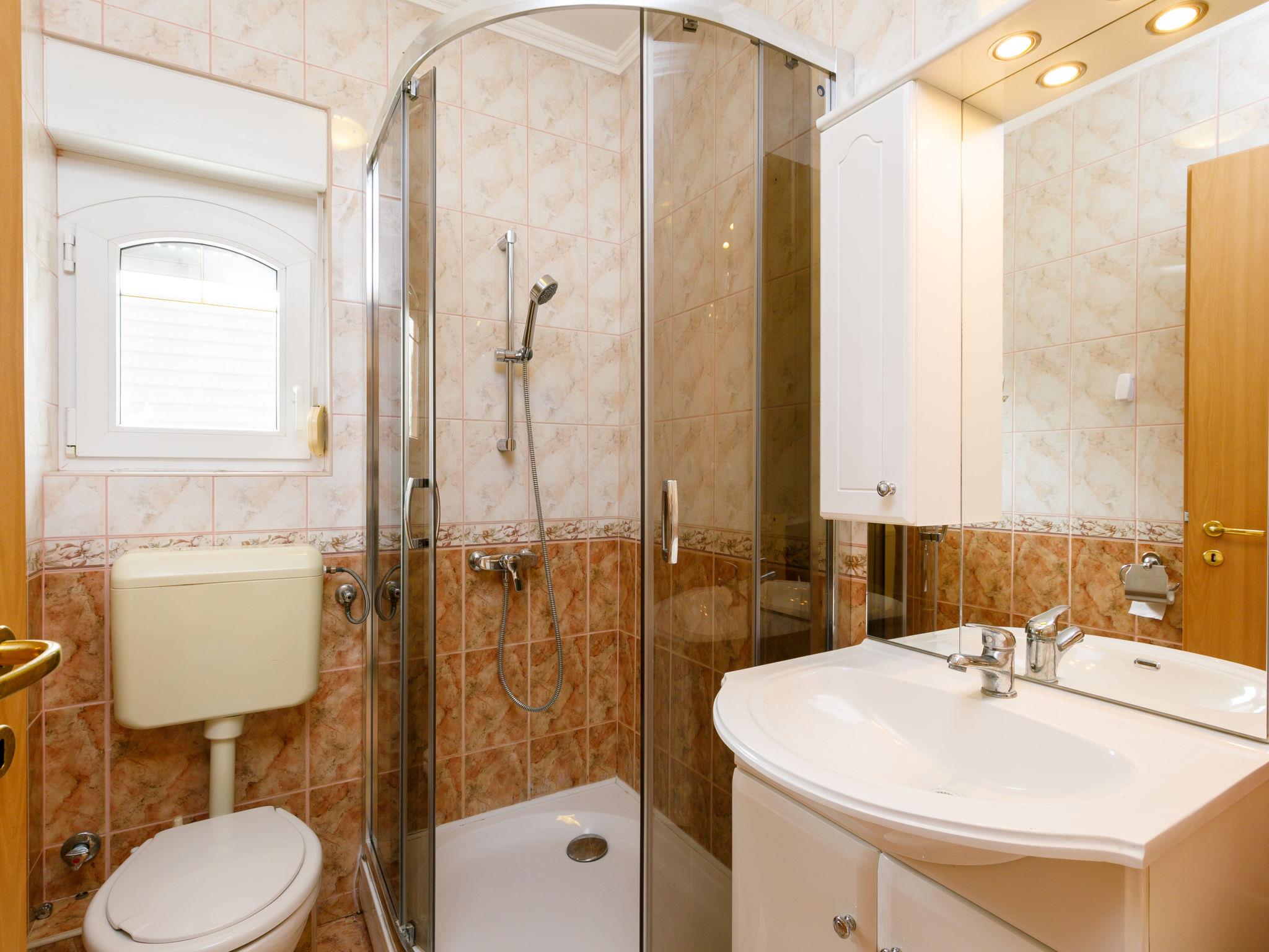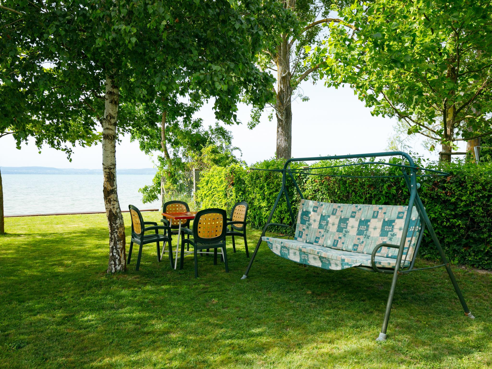 "Lakefront 2", 3-room apartment 45 m2, on the upper floor. Comfortable furnishings: dining room with dining table and air conditioning. Exit to the terrace. 1 room with 1 french bed (160 cm, length 200 cm), TV and flat screen. 1 room with 2 beds (90 cm, length 200 cm), satellite TV and flat screen. Open kitchen (2 hot plates, toaster, kettle, microwave). Shower/WC. Heating. Terrace 20 m2, north-west facing position. Terrace furniture, deck chairs. Very beautiful view of the lake. Facilities: iron, mosquito net, children's high chair, baby cot. Internet (WiFi, free). Parking (fenced).