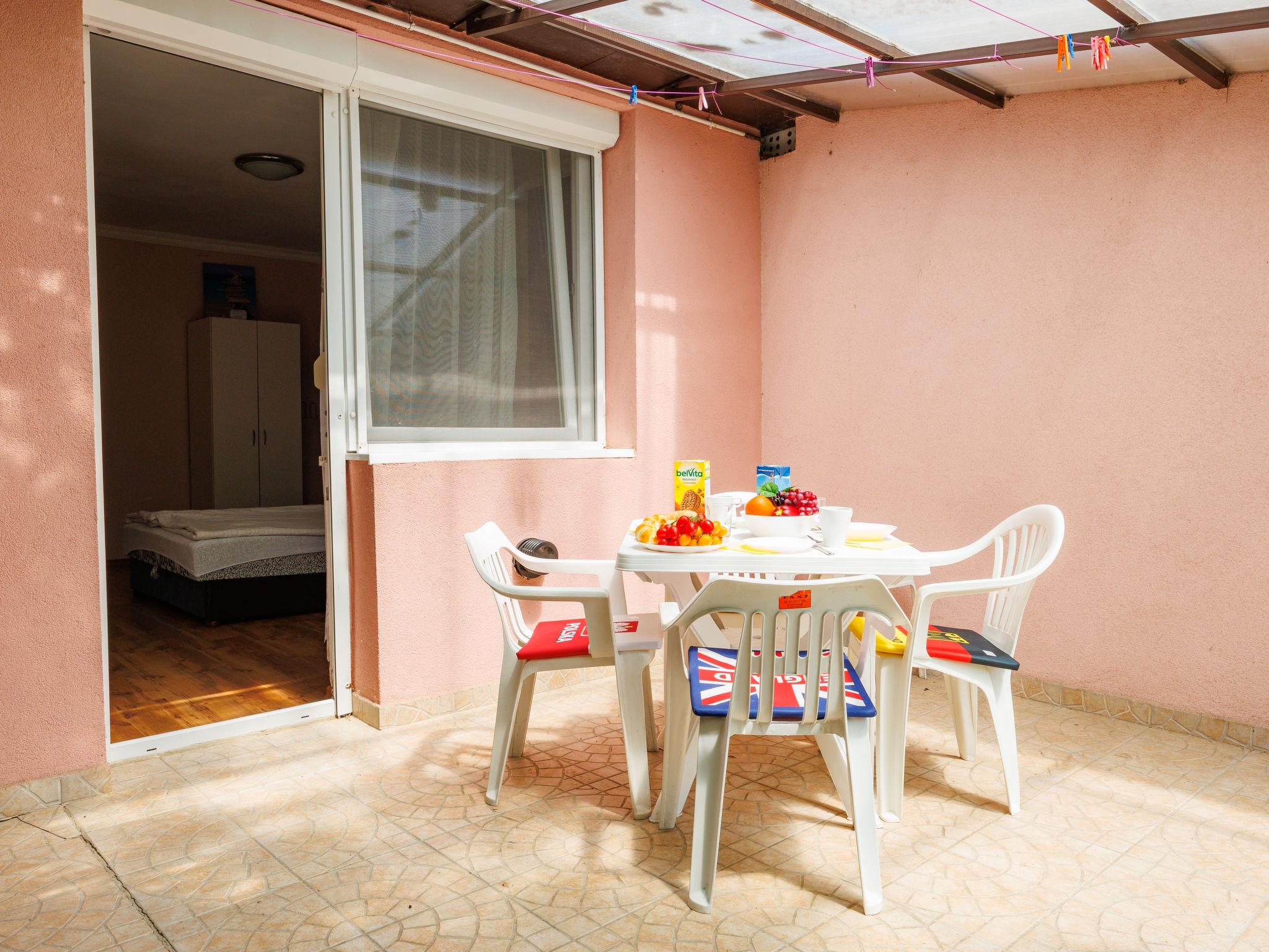 "Lien", 3-room apartment on the ground floor. Comfortable furnishings: living room with digital TV. Exit to the terrace. 1 room with 1 french bed (160 cm, length 200 cm). Exit to the terrace. 1 room with 3 beds (80 cm, length 180 cm). Exit to the terrace. Open kitchen (oven, 4 gas rings, kettle, microwave, freezer, electric coffee machine). Shower/WC. No heating option. 2 terraces, north facing position and south facing position. Terrace furniture, barbecue (portable). Facilities: washing machine, mosquito net. Internet (WiFi, free). Please note: The owner lives upstairs. MA23056074
