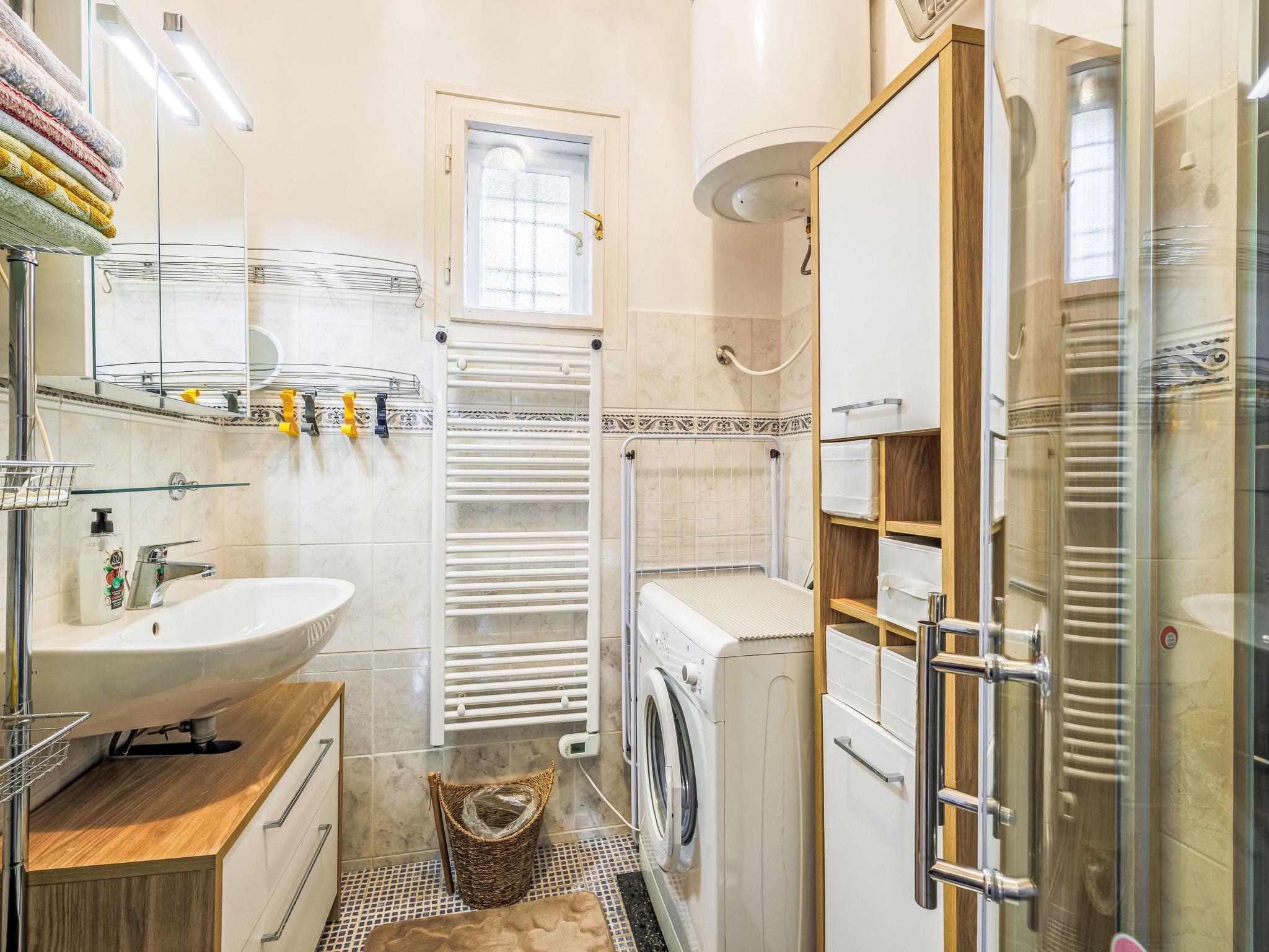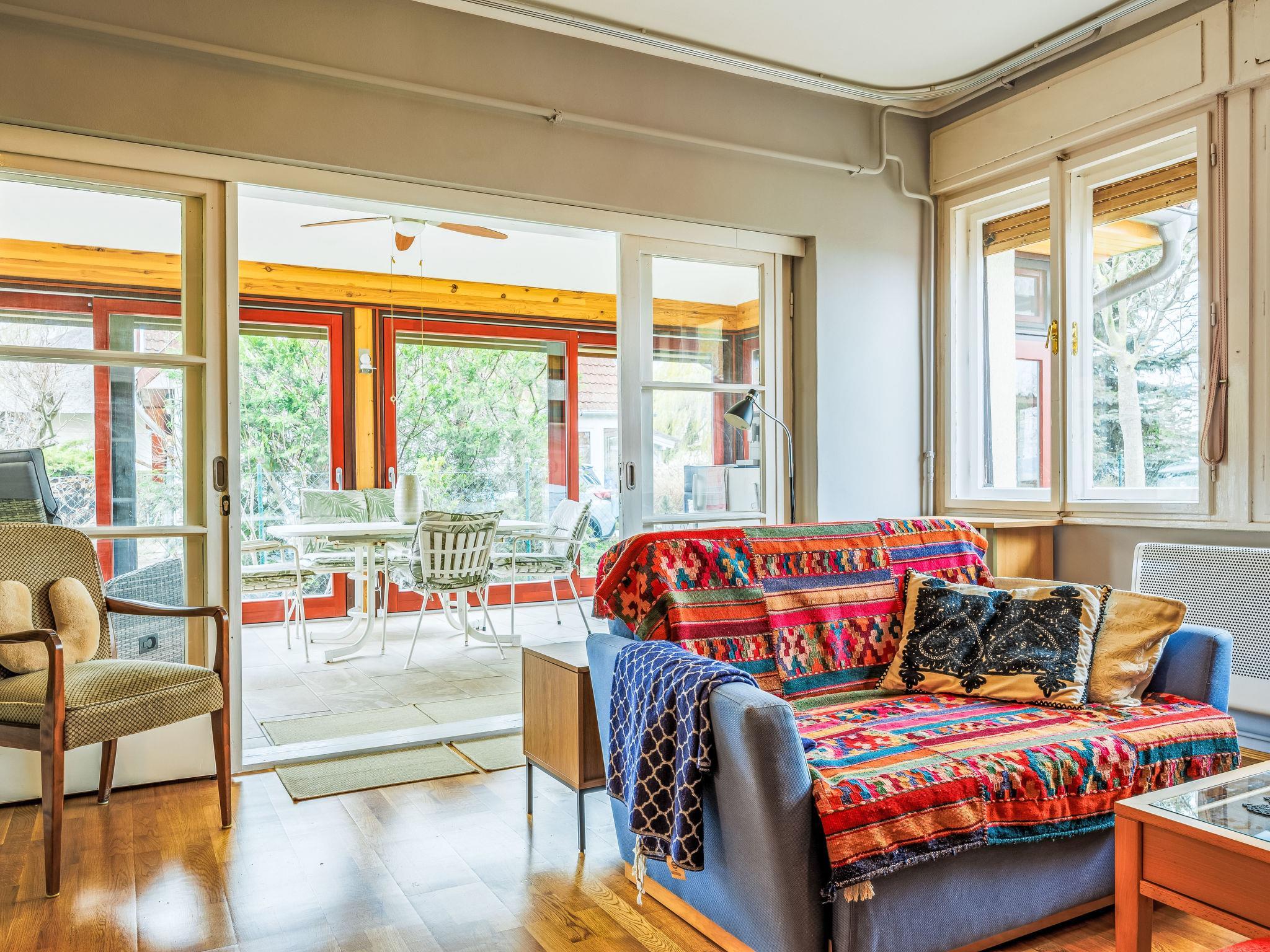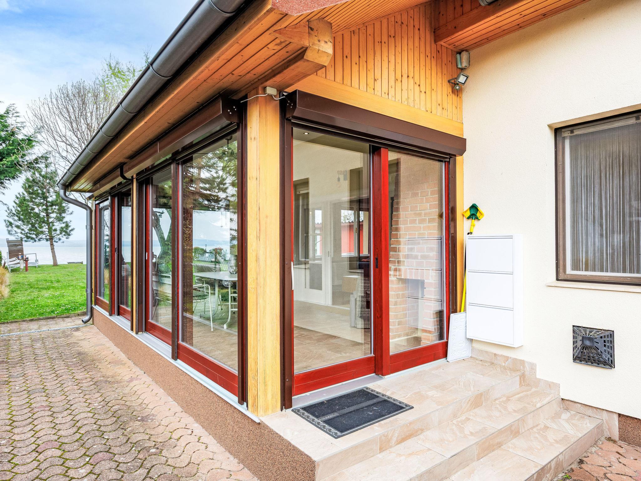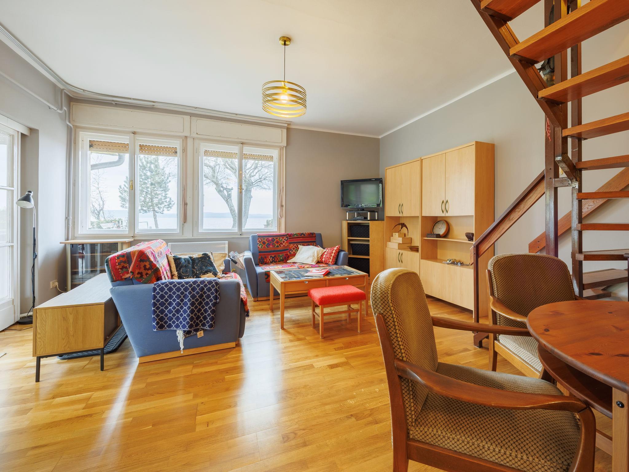 4-room house on 2 levels. Practical and comfortable furnishings: living room with cable TV and international TV channels. 1 small room with 1 bed. Dining room with winter garden. Exit to the garden. Small kitchen (oven, dishwasher, Gas stove, 4 gas rings, toaster, kettle, microwave, freezer, electric coffee machine). Shower, sep. WC. Heating, electric heating, gas heating, air-conditioning. Upper floor: 1 room with 1 french bed, 1 folding bed and air conditioning. Exit to the balcony, north-west facing position. 1 room with 2 beds and air conditioning. Exit to the balcony, south-east facing position. Shower/WC. Parquet floors. Terrace furniture, barbecue (portable), deck chairs (6). Marvellous panoramic view of the lake. Facilities: washing machine, mosquito net, hair dryer. Internet (WiFi). Parking (fenced 1 car). Please note: non-smoking house.