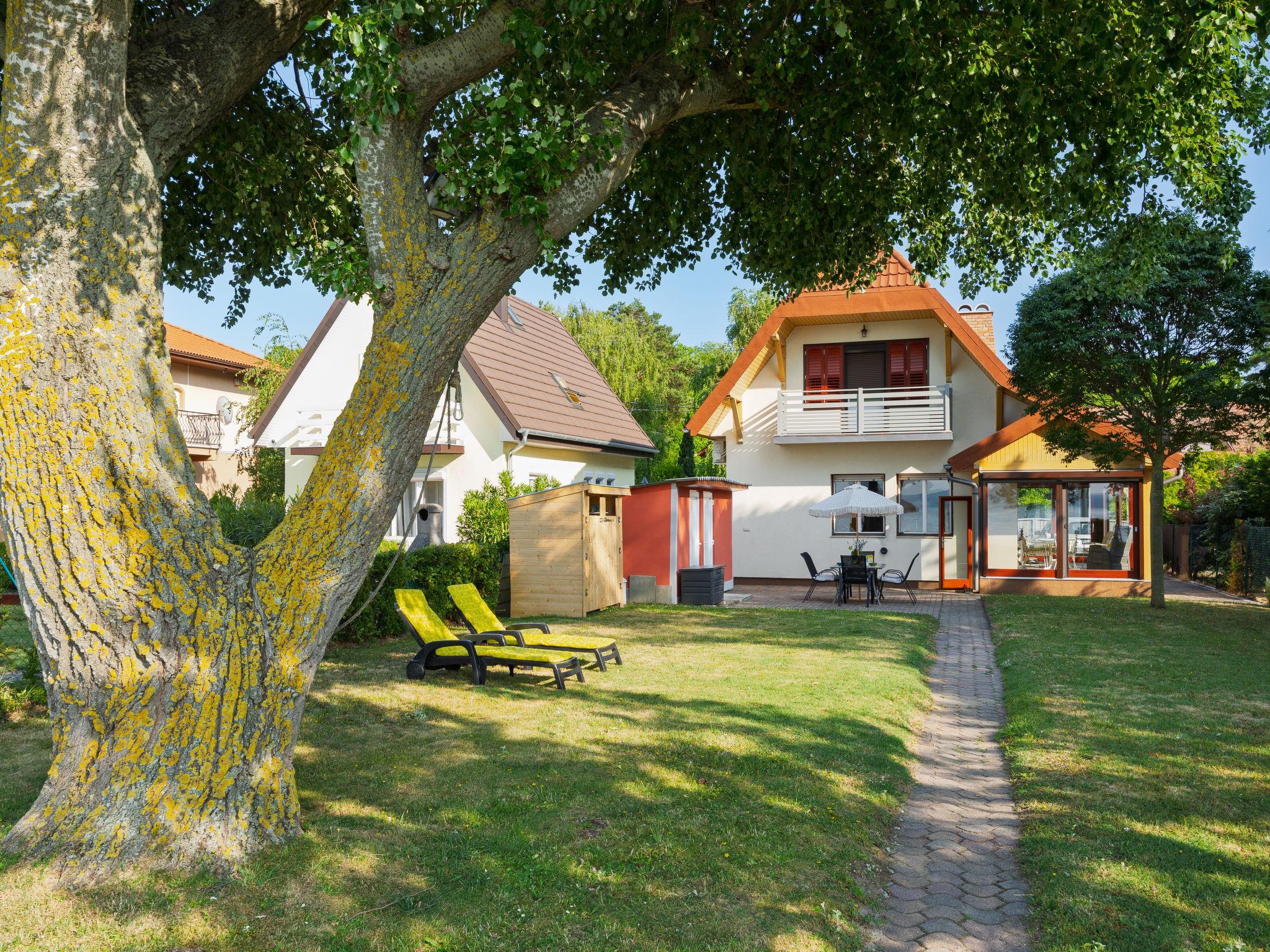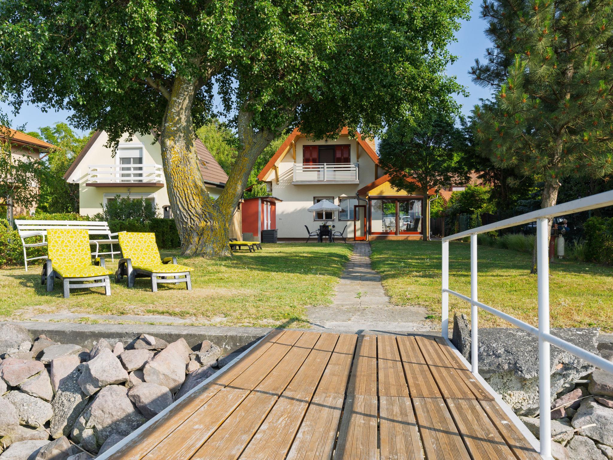 Balatonlelle 36 km from Siófok: Comfortable house "Lake House Sundown" in 2021. In a quiet, sunny position, 20 m from the lake, direct access to the beach, in a cul-de-sac. Private: garden, lawn for sunbathing. Outdoor shower, garden furniture, barbecue. In the house: WiFi, air conditioning, washing machine. Grocery 500 m, supermarket 4 km, restaurant 500 m, bicycle rental 3 km, thermal baths "Csisztapuszta" 31 km. Tennis 4 km, riding stable 6 km, cycle lane 100 m, children's playground 1 km. Nearby attractions: Siófok Giant Wheels 36 km, Kereki Dinosaur Park 23 km, Adventure Park Zamárdi 28 km, Bella Zoo Siófok 45 km, Bebo Aquapark 38 km, Kishegy Weinberg 7 km. The owner does not accept any youth groups. Please note: railway line 100 m from the property. Direct access to the lake with private dock.