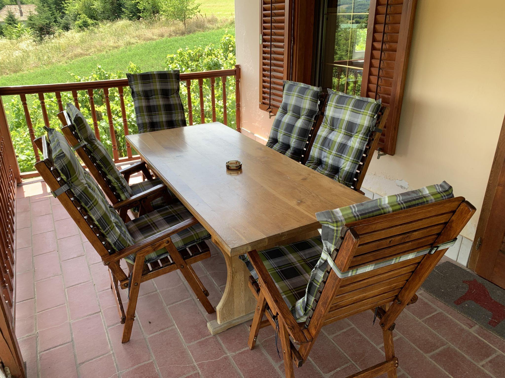 Látrány 5 km from Balatonlelle: Cosy cottage "Pax", 2 storeys. Outside the resort Látrány, in a quiet, sunny, elevated position, 6 km from the lake, 6 km from the beach. In the house: air conditioning. Parking on the premises. Bus stop 2 km.